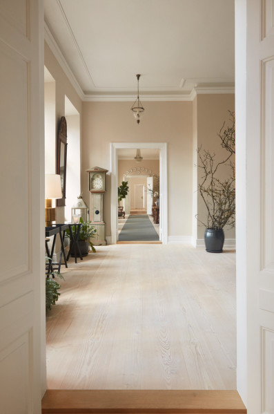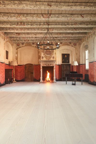 Holckenhavn Castle has Dinesen Douglas plank floors throughout. The planks underscore the grandiose atmosphere of the castle’s many halls, corridors and rooms as a harmonious complement to the historical setting.
