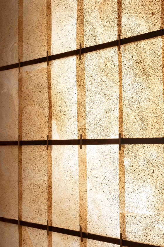 Enter a sensory journey through four portals of materials, each unfolding the aesthetics of the sawdust material studies by Flexibility, Insulation, Translucency, and Structure.