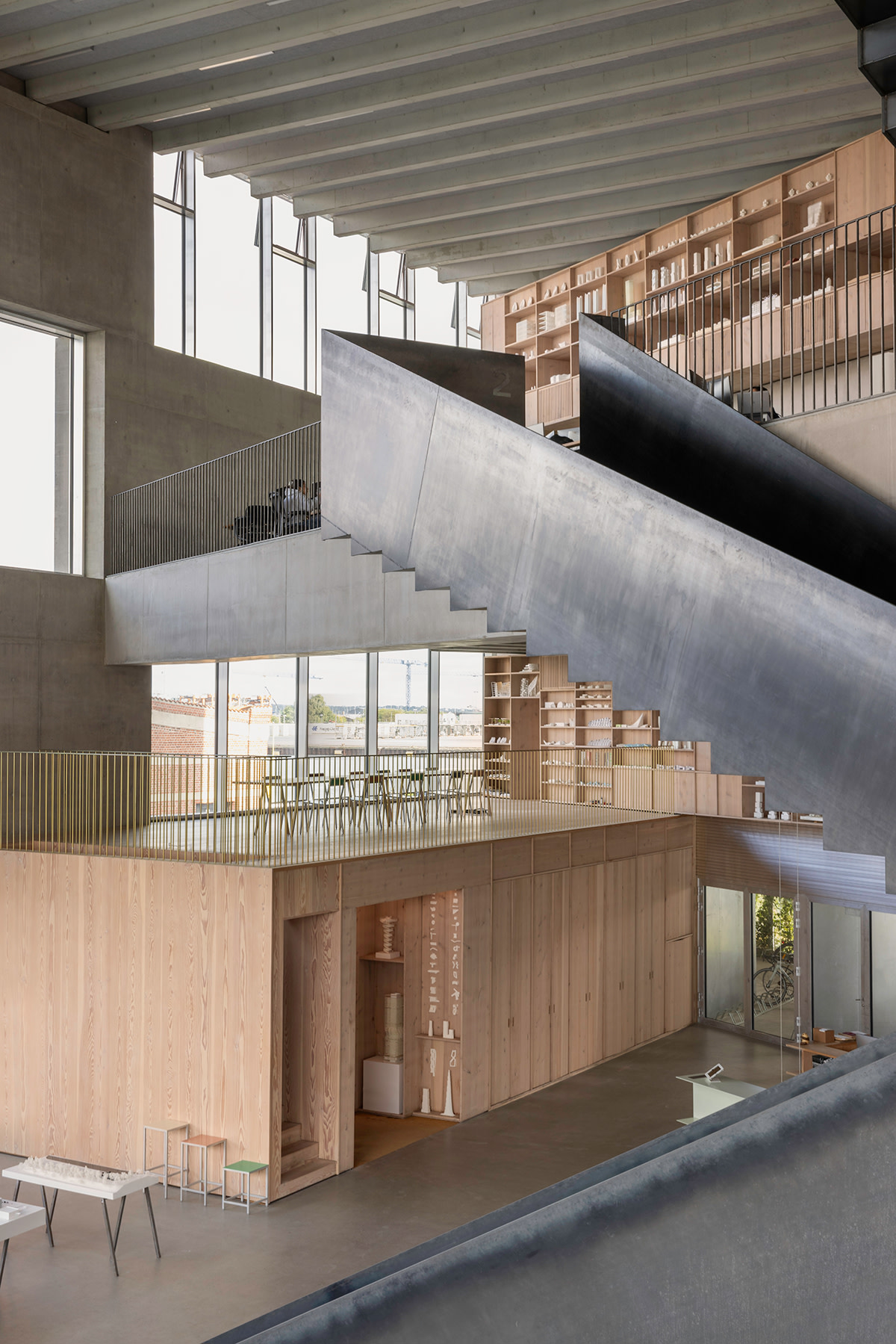 Bygningen udfordrer konventionelle byggemetoder med en unik bærende struktur og en 140 meter lang udendørs trappe, der forbinder alle etager. Indenfor åbner en Piranesi-inspireret trappekerne op for kig på tværs af etagerne, hvor lys og materialer spiller sammen i en konstant foranderlig oplevelse.