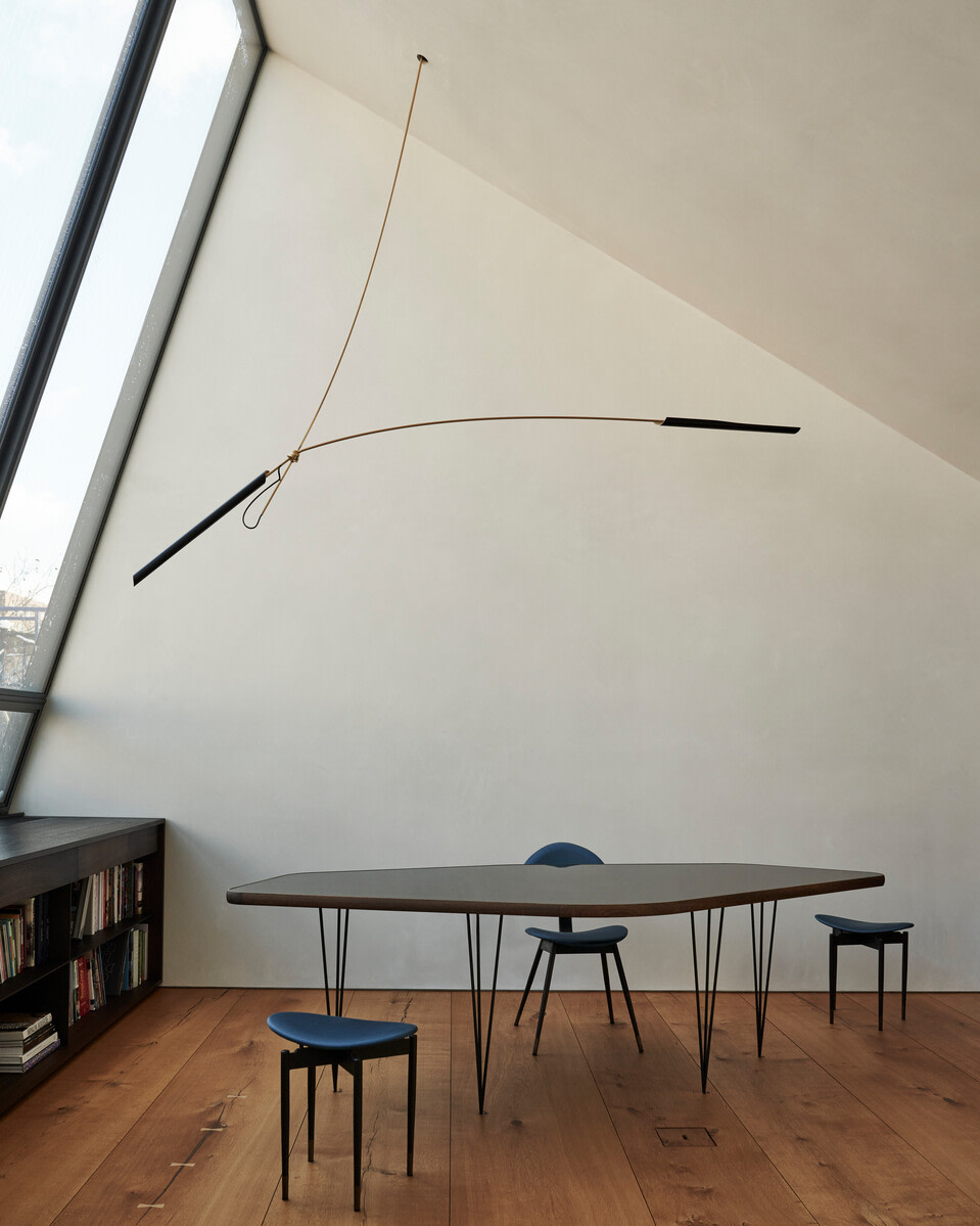 Efterhånden som man bevæger sig længere op i huset, bliver rummene gradvist mere modtagelige for byens stemning. Den øverste etage – tilbygningen – udvisker grænsen mellem inde og ude. Med store, vinklede vinduer, et skulpturelt ovenlysvindue, indvendige ruder mellem rummene og en penthouseterrasse åbnet mod himlen, er det øverste plan en kontinuerlig dialog mellem inde og ude og mellem hjem og by.