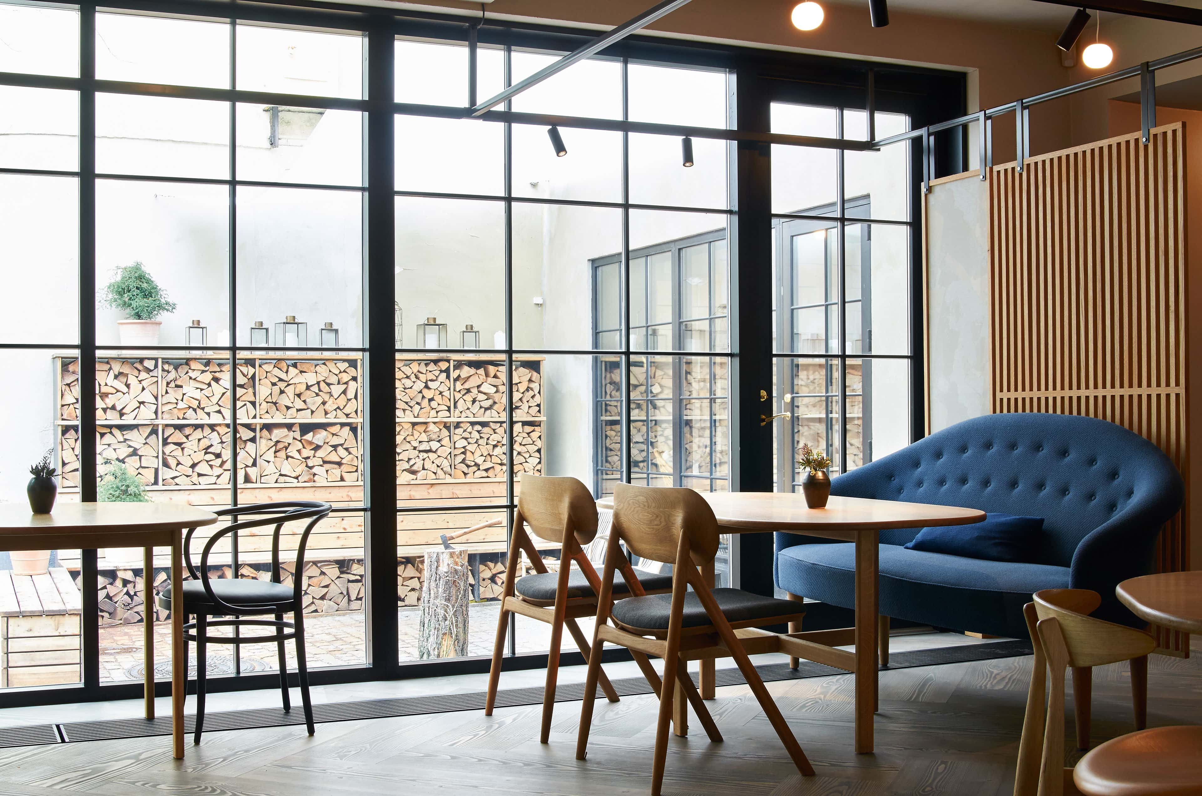 Behind a blue door in Copenhagen waits not only a culinary experience that serves the nature of the Danish island of Bornholm up on a plate. The restaurant Kadeau also boasts an interior with a passion for natural materials, excellent craftsmanship and seductive features.