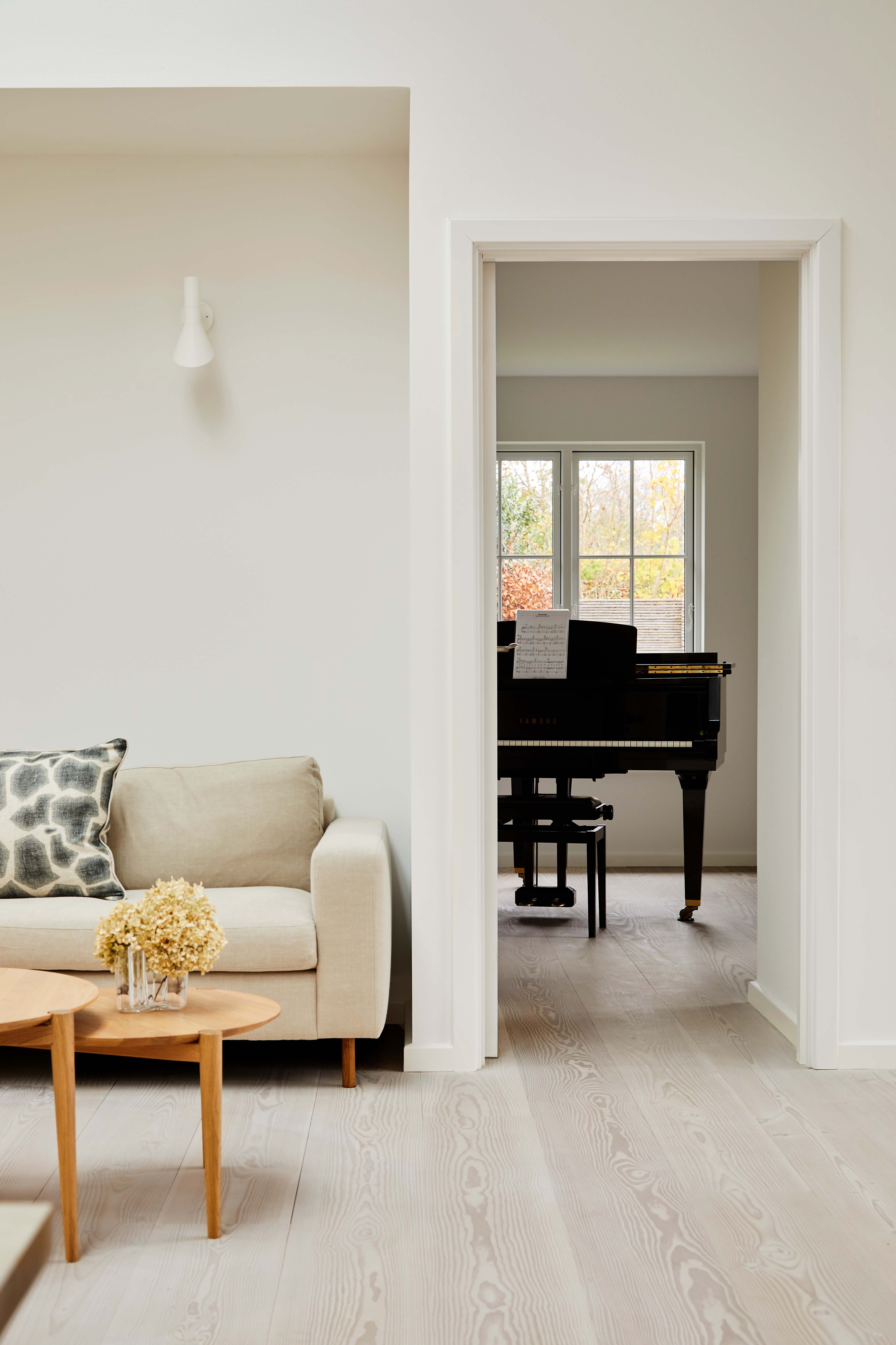 I det ene hus bor forældreparret og i det andet parrets to døtre, som bruger det med deres familier. Fælles for begge huse er, at indretning og design fremstår nordisk, lyst og indbydende.