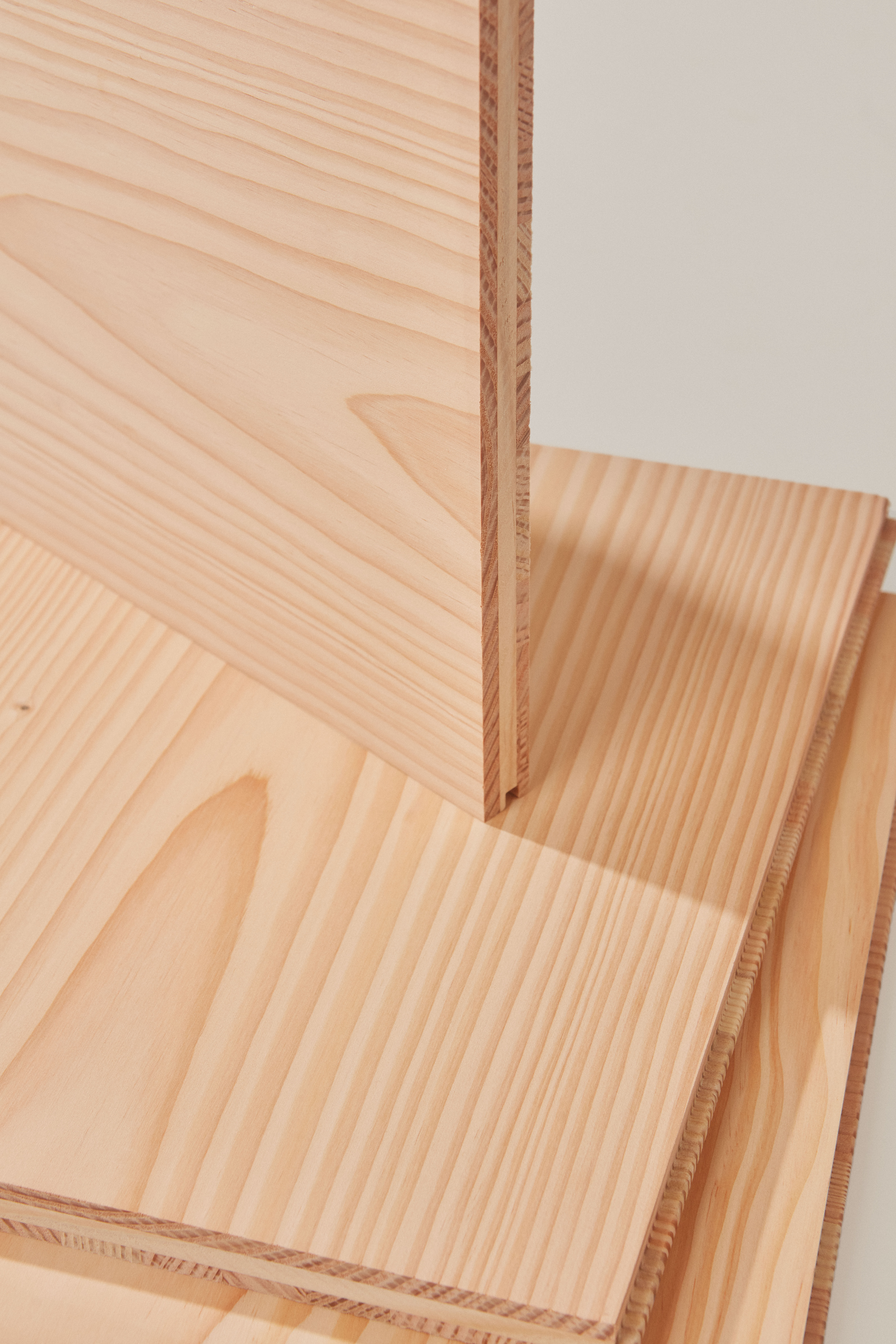Layers Douglas er opbygget af douglastræ, med et solidt toplag af den ypperste kvalitet, og et midterlag og en underside af massiv Douglas eller fingersamlet resttræ i Douglas fra vores produktion af massive planker.