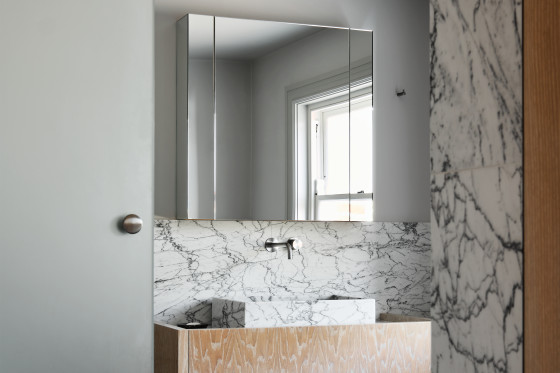 Speziell entworfene Tischlerlösungen für Aufenthaltsräume, das Schlafzimmer, das Ankleidezimmer und das En-Suite-Badezimmer spiegeln die Kontinuität in der Einrichtung wider, während dem Original-Fliesenboden in der Diele im Erdgeschoss durch eine sorgfältige Restaurierung neues Leben eingehaucht wurde.