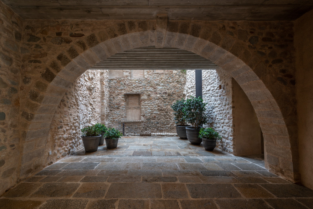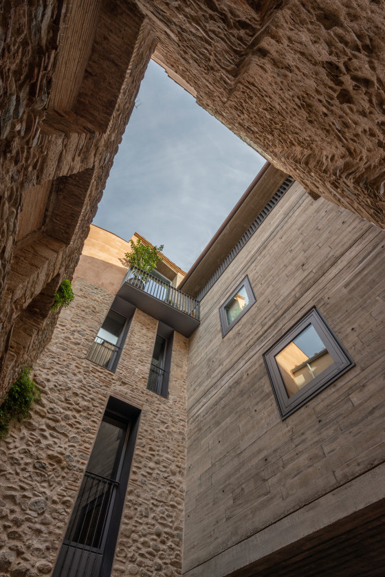 Neue Regel haben die Architekten dazu gezwungen, die Fassade zur Straße weiter nach hinten zu versetzen, was zu einem kompletten Umbau führte. Zu diesem Zweck wurden die vorhandenen Steinöffnungen wiederverwendet und die Architektur durch die Schaffung von Durchblicken und Dachüberständen vollendet. Die Fassaden hin zur Plaza del Pou Rodó und zum Innenhof sind ganz neu. Letztere wurde mit freiliegendem Beton abgeschlossen, um einen Zusammenhang zur Trittstufe im Eingangsbereich herzustellen.