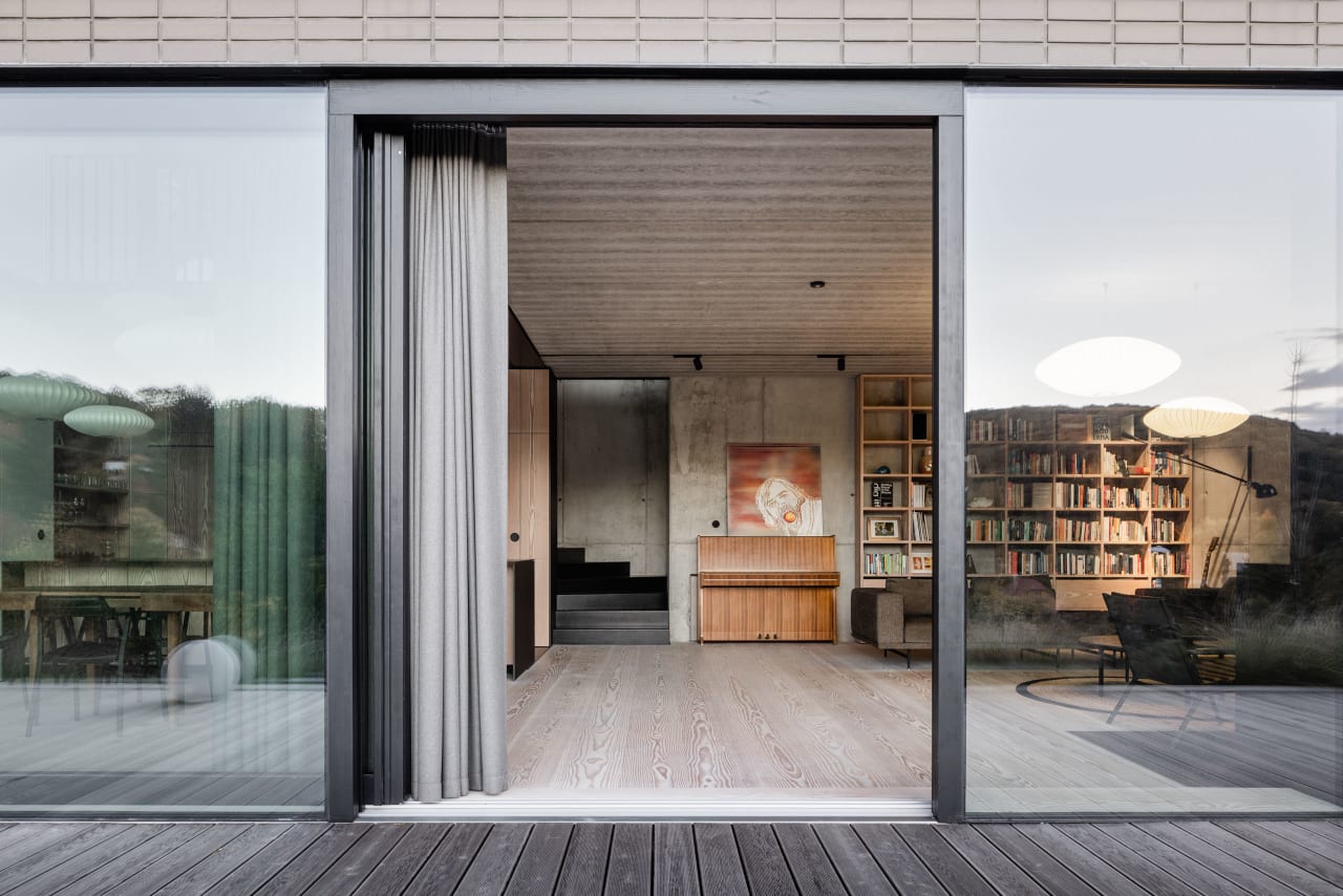 Das DOMM House ist ein minimalistisches Zuhause für eine dreiköpfige Familie. Das Haus weist möglichst geringe Abmessungen auf, wobei jedoch maximaler Lichteinfall angestrebt wurde. Der Modulaufbau ist sorgfältig durchdacht und präsentiert ein symmetrisches Zusammenspiel – von den Fassadensteinen über die Wandverkleidung aus Beton bis hin zu den tragenden Stahlsäulen und den Holzböden aus Dinesen Douglasie.