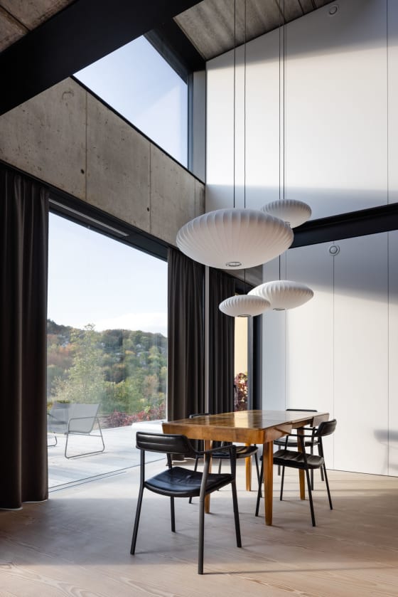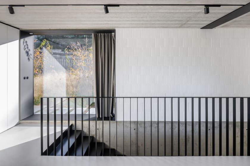 Mit seinem minimalistischen und ausdrucksstarken Stil, der innen wie außen zur Geltung kommt, bildet das Haus einen starken Kontrast zu den umliegenden Gebäuden – Charakterzüge, die der Architekt bewusst gewählt hat.