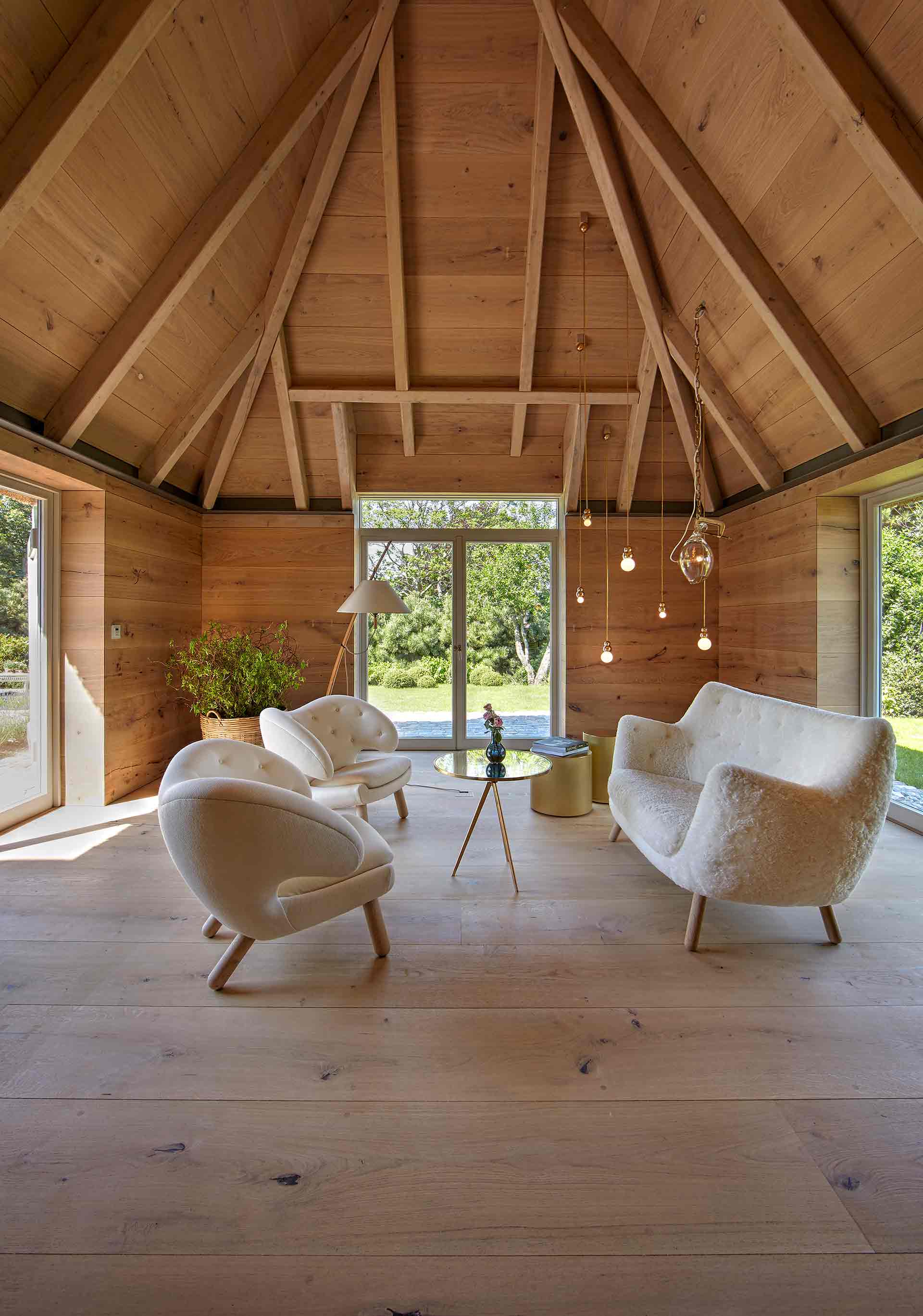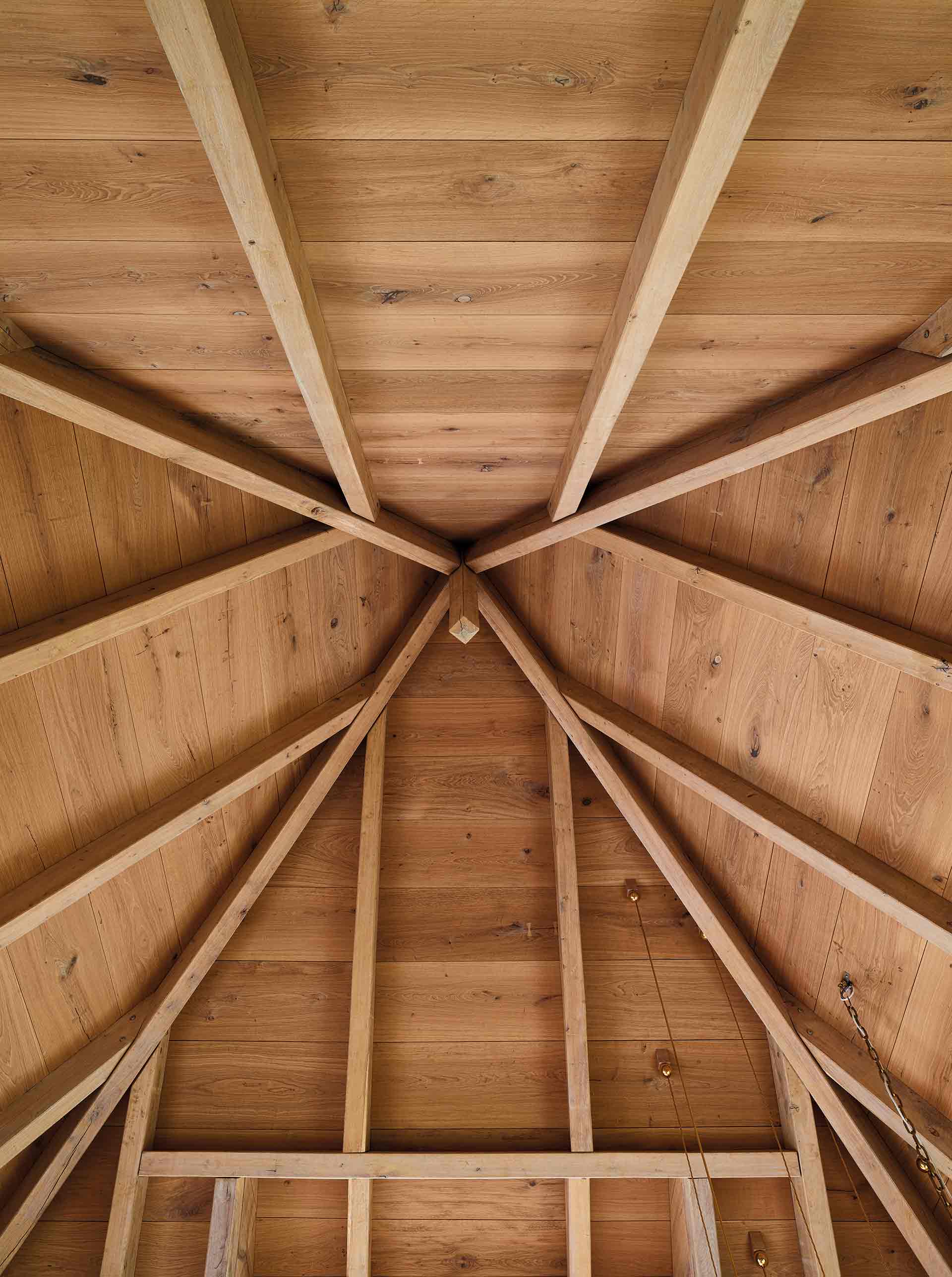 The owners have furthermore detached an outbuilding with a high-beamed ceiling, where they chose to cover all surfaces with HeartOak as well.