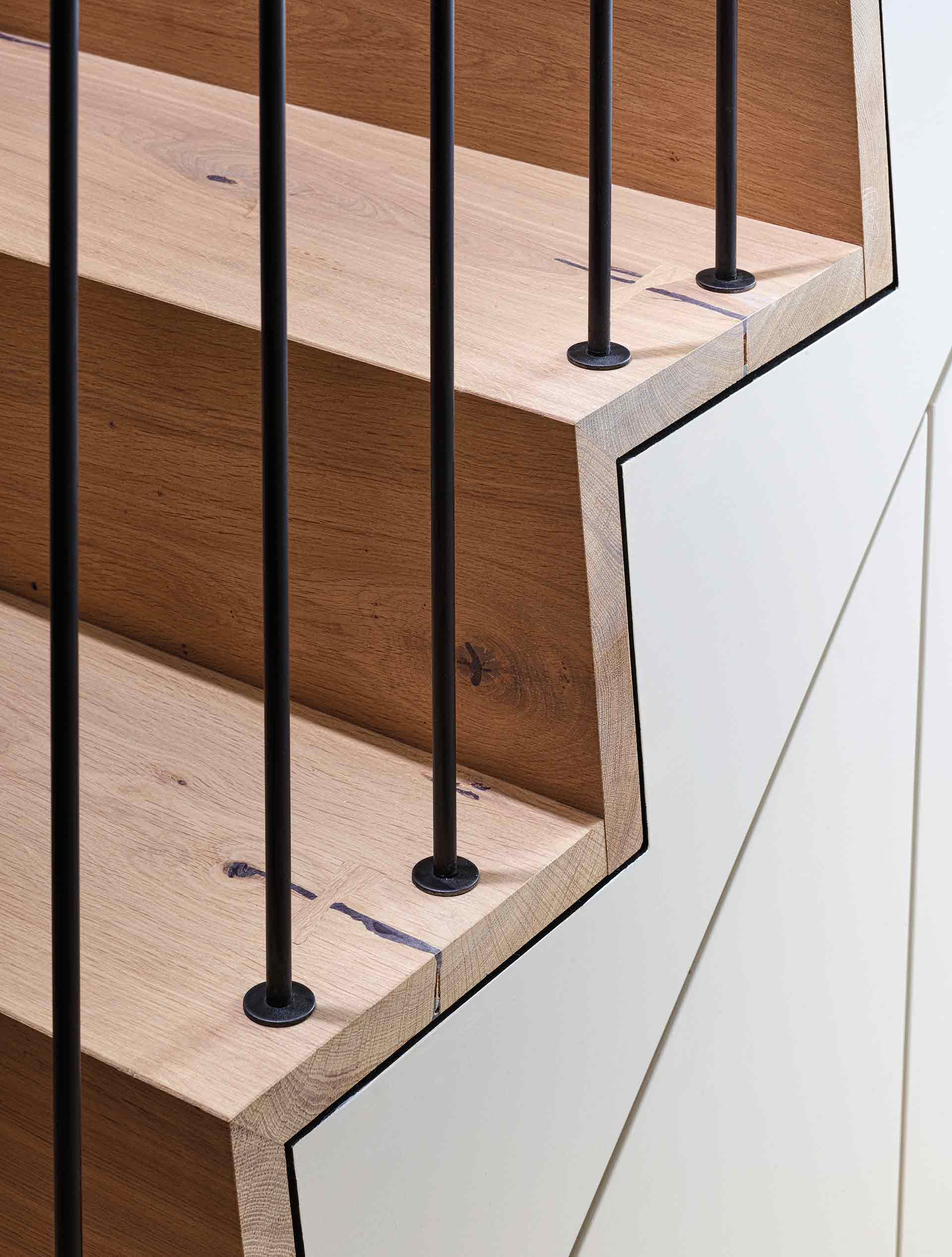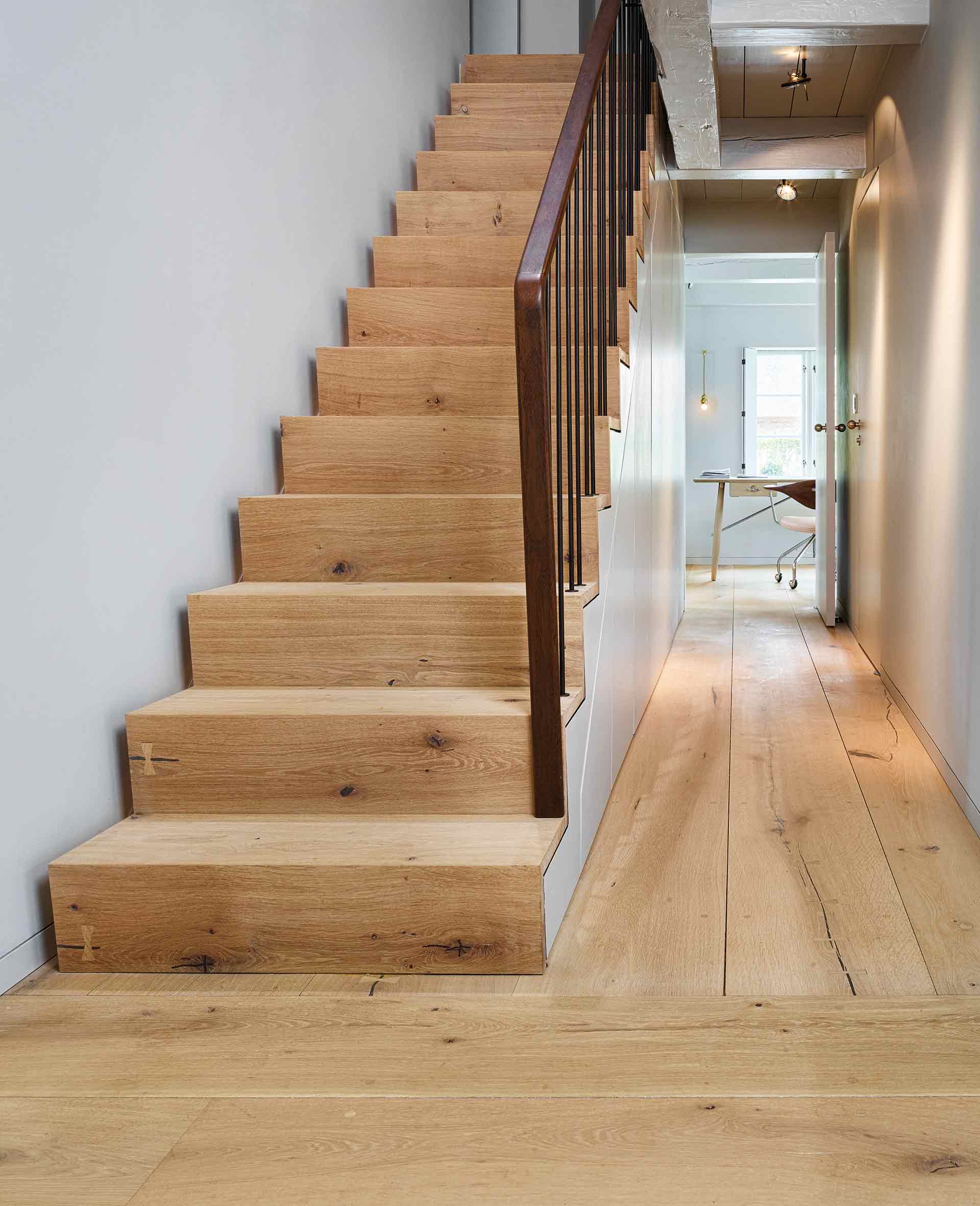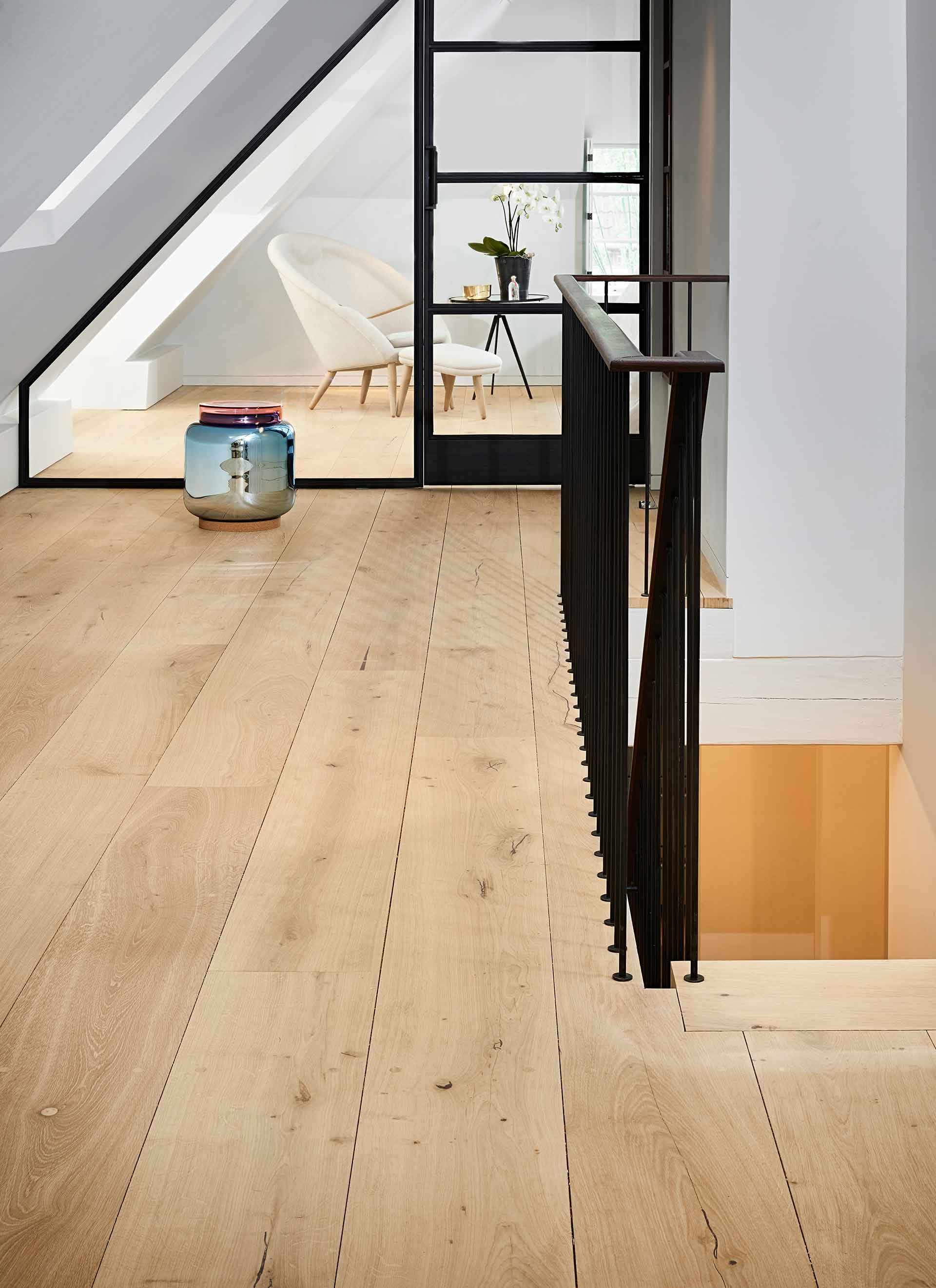 The exceptionally wide HeartOak planks come from the heart of the tree, and out of respect for the old oak trees, natural cracks have been preserved. As a particularly beautiful detail, the cracks are locked by butterfly joints of oak.