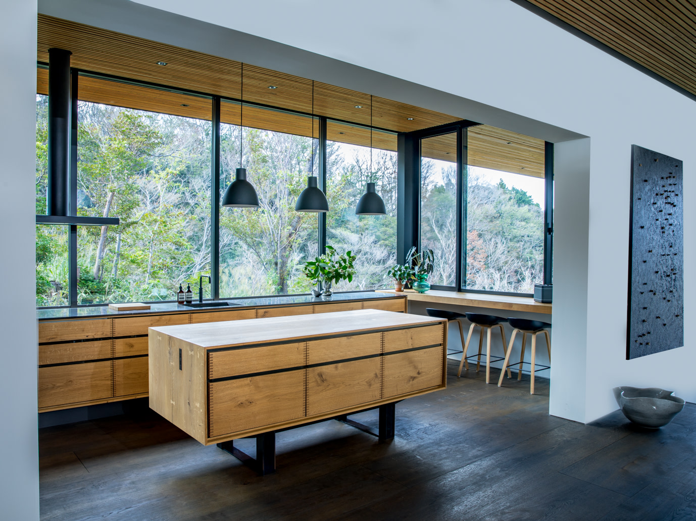 Nicolai Bergmanns Haus in Hakone liegt friedvoll auf einem 2 ha großen Grundstück, mit ungestörtem Blick auf die Landschaft und den Fuji, den höchsten Berg Japans. Entworfen wurde das Haus von Klein Dytham Architects – es verschmilzt mit der Naturkulisse im Hintergrund und der schönen Szenerie mit heißen Quellen und Wäldern.