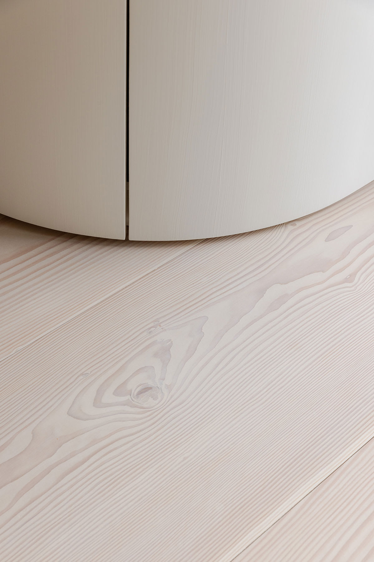 Die warme Textur und die außergewöhnlichen Abmessungen der Bodendielen aus Dinesen Douglasie erstrecken sich über den gesamten Wohnbereich und verstärken das Flow-Erlebnis.