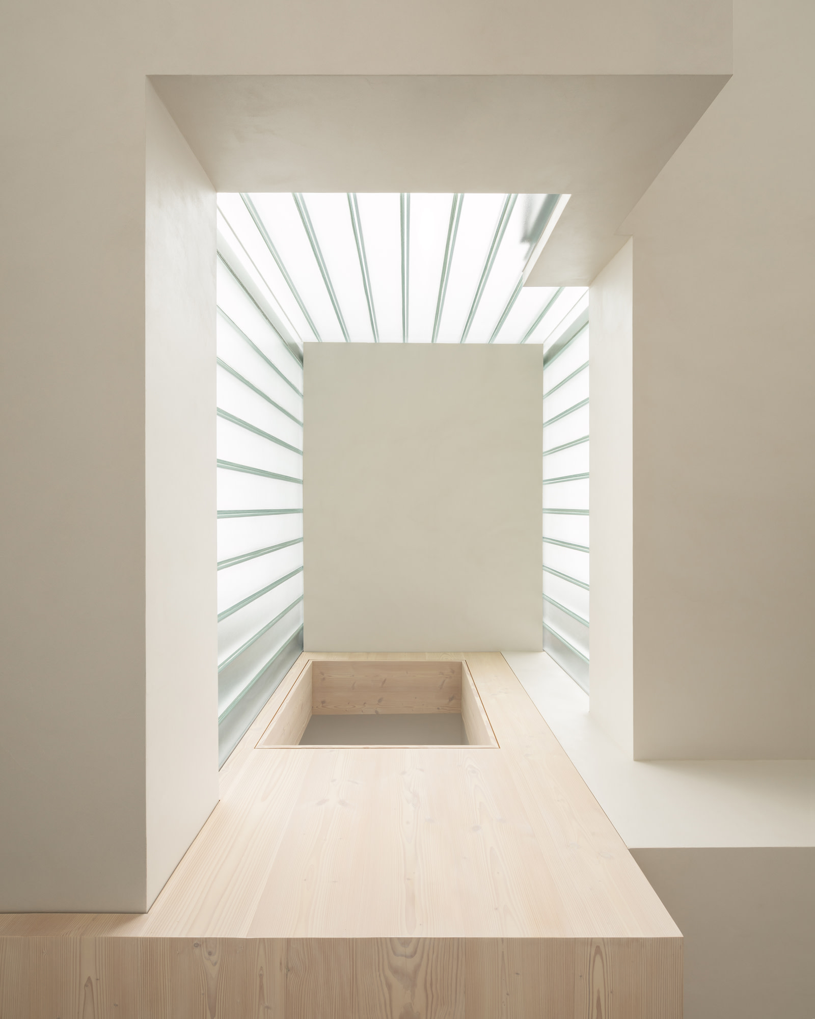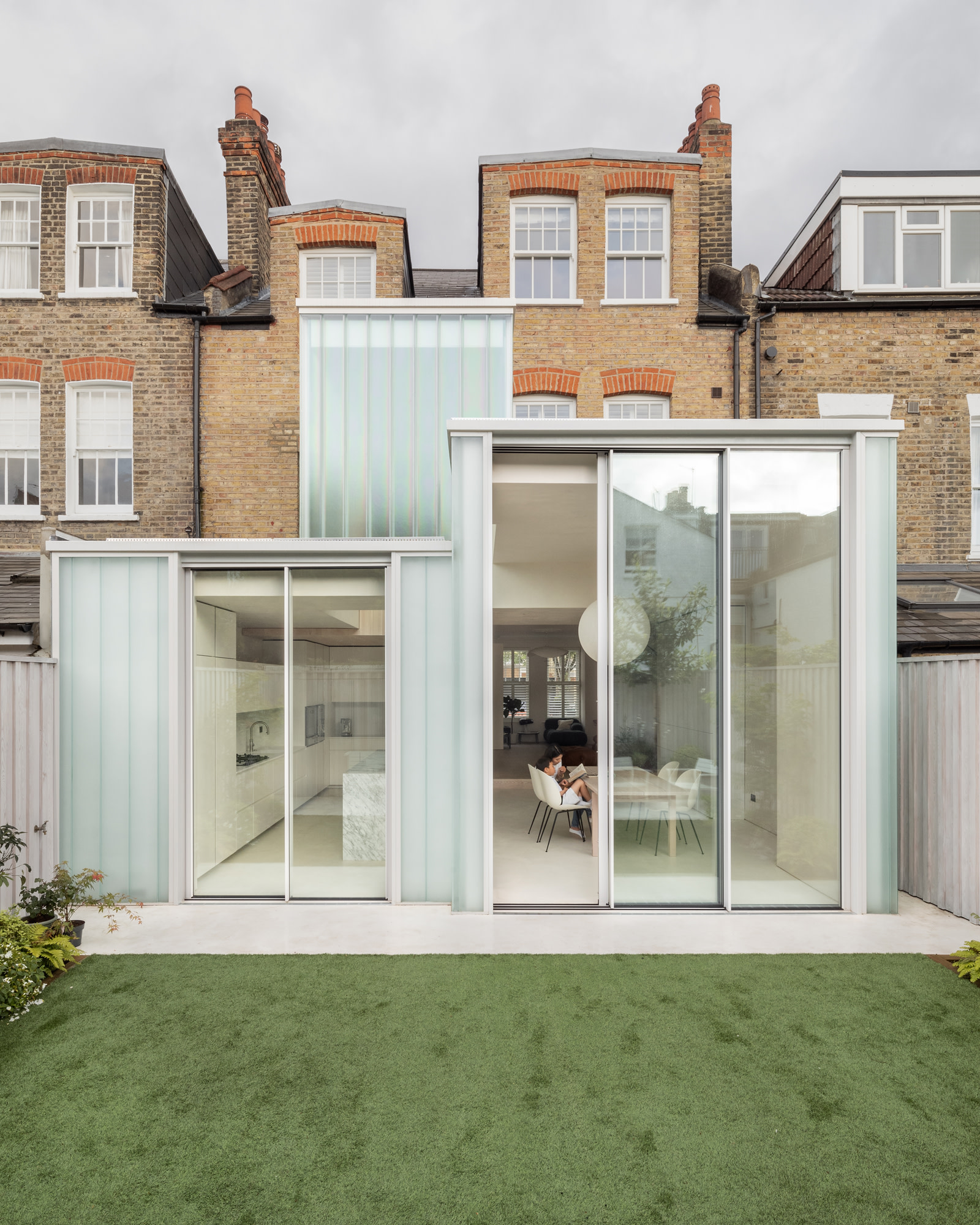 Das Architekturbüro Proctor & Shaw mit Sitz in London hat sich auf transformative Architektur spezialisiert, die in maßgeschneiderten Lösungen mit diskreter, in Schlichtheit verkleideter Komplexität kulminiert. Für das reizvolle Reihenhaus Sky Lantern House in Wandsworth entwarf das Büro einen neuen Anbau. Die äußeren Formen bilden einen voluminösen, skulpturalen Innenbereich, der von geometrischen Formen geprägt ist. Im Inneren und auf der Rückseite des Hauses sind die Decken erhöht, so dass das Licht durch den Rest des Erdgeschosses gefiltert und sorgfältig manipuliert wird.