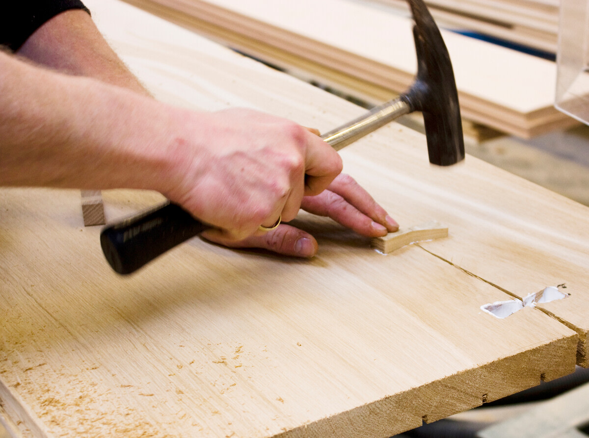 Wir respektieren das Holz als lebendiges Material und tun alles dafür, einzigartige Fußböden herzustellen, die den Reichtum der Natur bewahren. Daher schenken wir einer Diele die Aufmerksamkeit, die sie verdient. Das bedeutet u. a., dass Äste erhalten und – falls erforderlich – vorsichtig repariert werden, um die Persönlichkeit des Holzes zu respektieren. Das bedeutet auch, dass die Dielen auf ihrem Weg durch die Produktion durch mehrere Hände gehen, wo sie mehrfach auf ihre Qualität geprüft und fein geschliffen werden, um langlebige und einzigartige Böden zu werden.