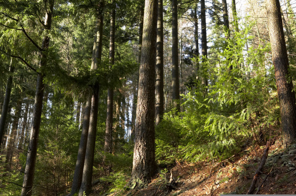 Der Holzeinschlag im Schwarzwald basiert auf dem Konzept des Plenterbetriebs, d. h., dass nur Einzelstämme entnommen werden. Im Gegensatz zur großflächigen Rodung ist der Plenterbetrieb die nachhaltigste Form des Forstbetriebs, da sie sie zur Pflege des natürlichen Waldklimas beiträgt. Aus diesem Grund werden die Stämme für Dinesen einzeln ausgewählt auf Grundlage der einzigartigen Kenntnisse unserer Forstingenieure über Alter und Geschichte jedes Baumes. Sie verfolgen die Entwicklung der Bäume im Wald und beurteilen, wann es am sinnvollsten ist, den jeweiligen Baum zu fällen. Dies hängt unter anderem von folgenden Kriterien ab: der Größe des Baumes, der Menge CO2, die er in seiner Lebensdauer gespeichert hat, und der Dichte der umgebende Vegetation – vielleicht benötigen die anderen Bäume mehr Licht und Luft.