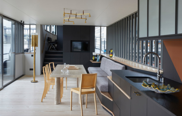 FEDERICO MASOTTO ARCHITECTE transformed the houseboat Isadora into a floating designer home for a Parisian family who had a dream of getting closer to nature in the heart of the city.
