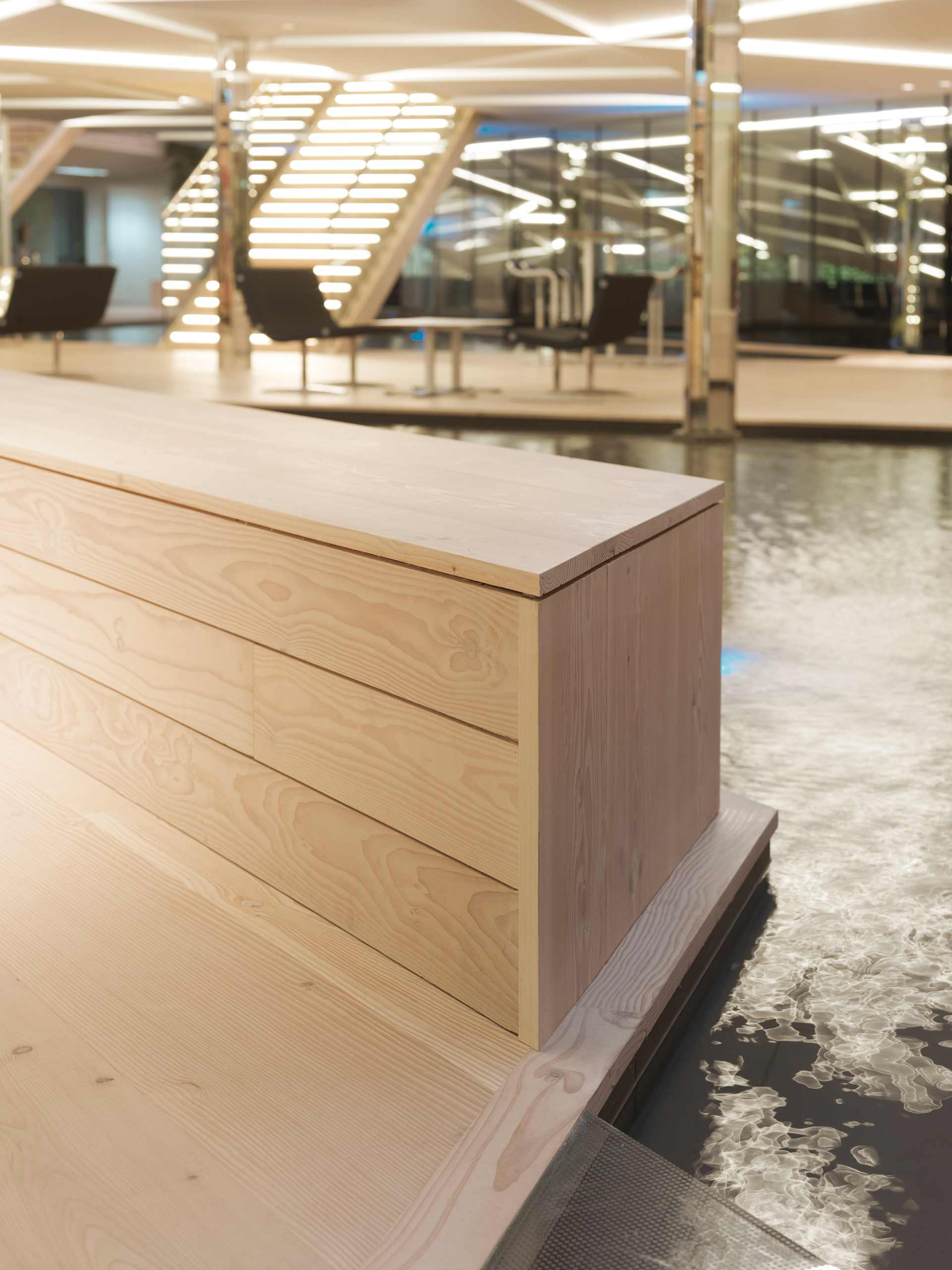 In areas that encourage physical activity, such as the large recreational space and the walking areas, the flooring is made of Dinesen Oak Natural – and here, the badminton court has been re-established. Dinesen Douglas is used in lounges and auditoriums and for cladding and planters.