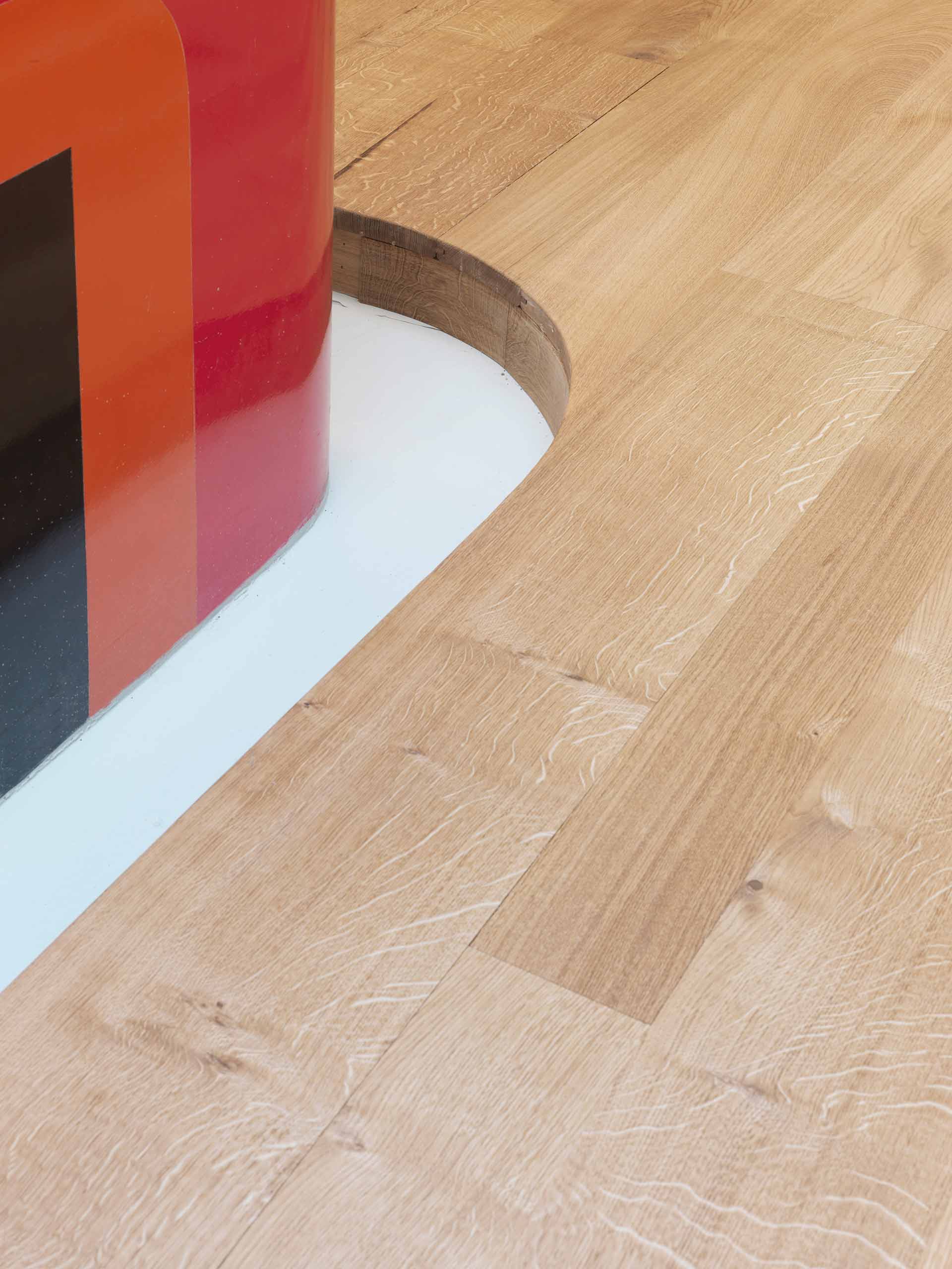 In the centre of the building, the architects created a new two-storey element that breaks free from the existing architecture and creates a new framework. An elegant combination of Dinesen Oak Natural and Dinesen Douglas serves to define the individual functions.