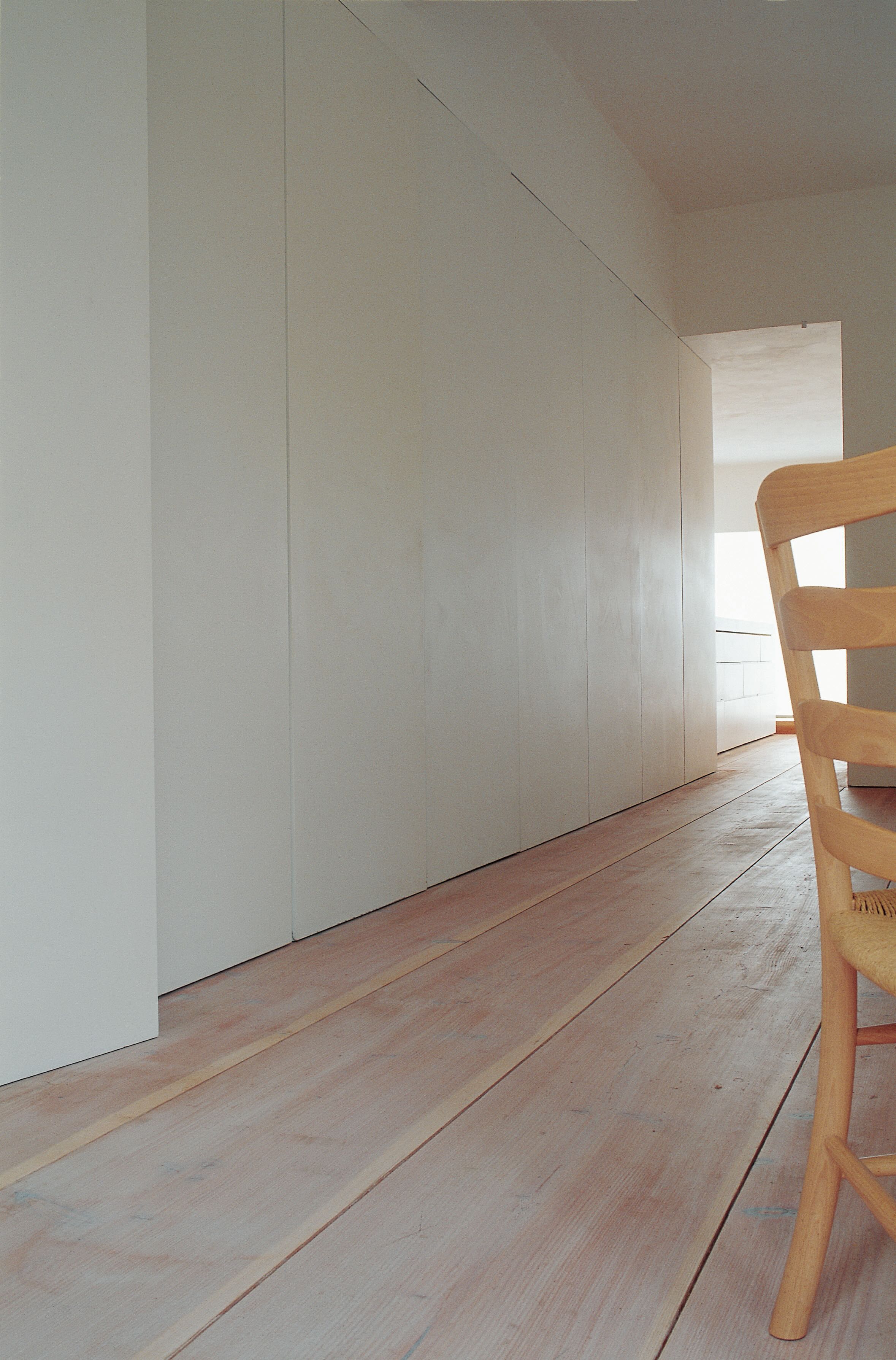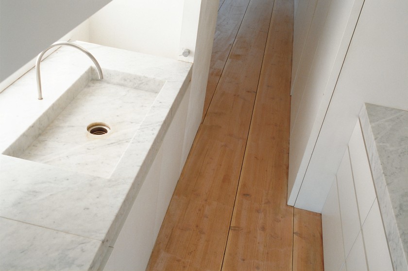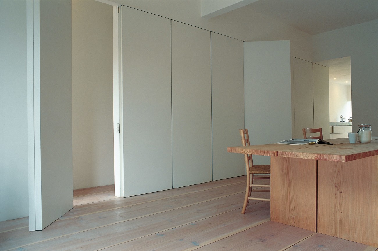 The 450-millimetre-wide, straight, 15-metre-long Douglas planks now adorn Pawson House London. The planks are laid crosswise throughout the house, from the front of the house to the garden in back. The flooring laid the foundation for the rest of the interior.