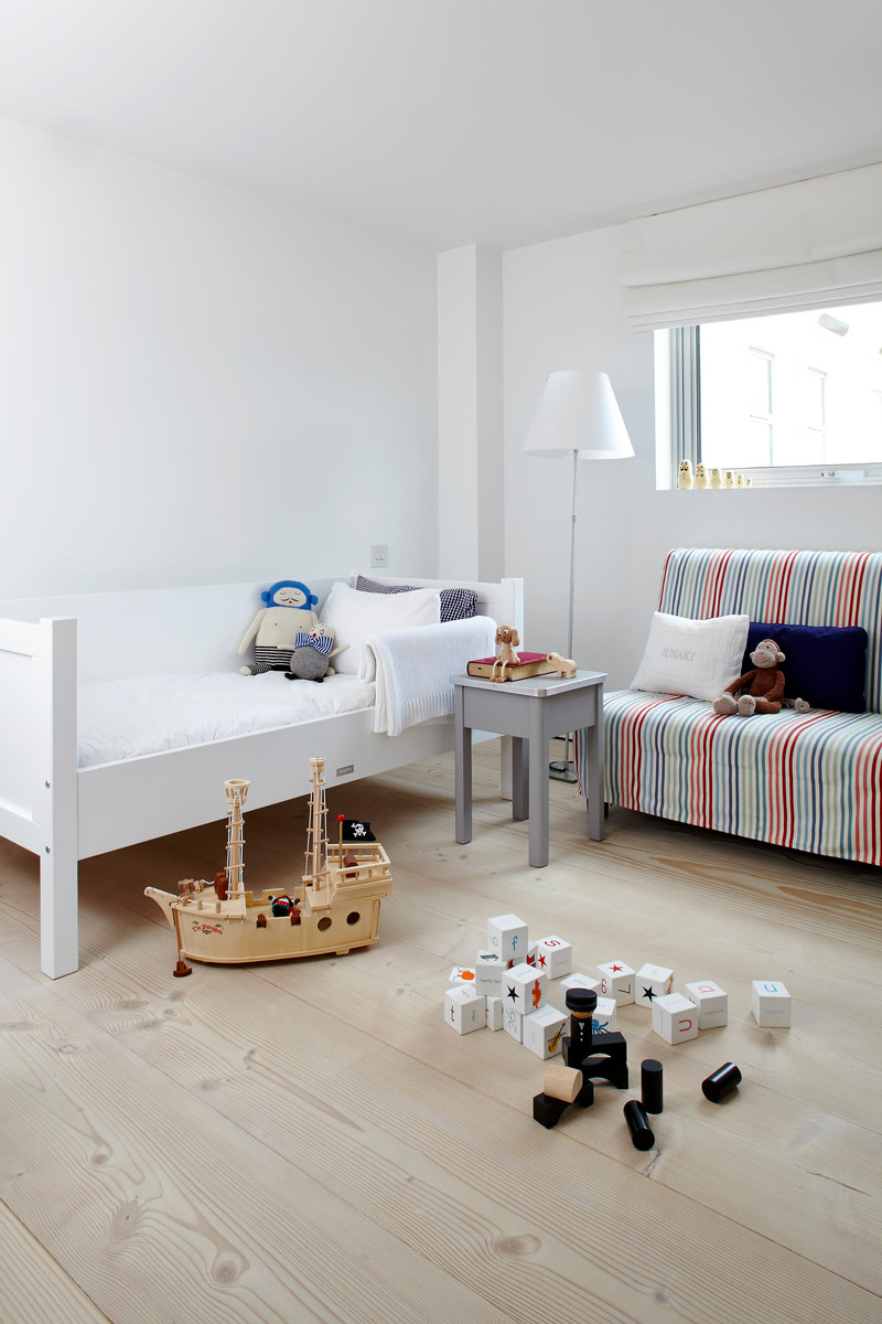 From the flat there is a spectacular view of the Thames River, which can also be enjoyed from the balconies. The interior is held mostly in white with clean and simple lines, which is nicely combined with light Dinesen Douglas planks throughout that add natural warmth to the rooms.