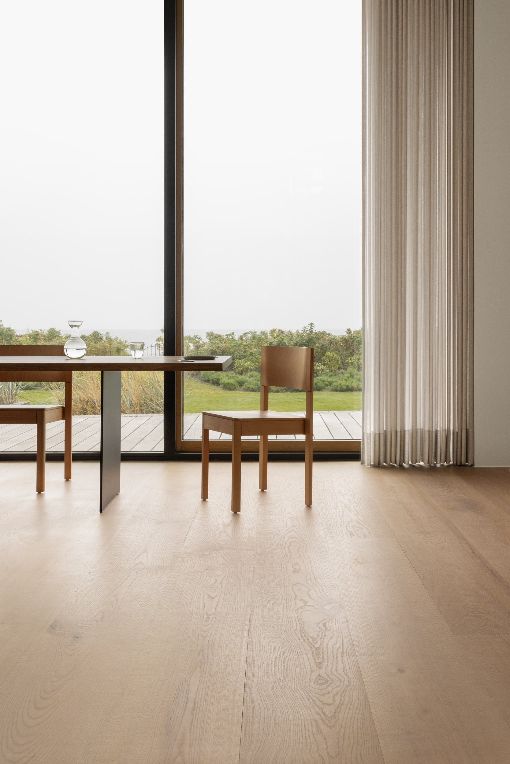Located directly by the beach in Jutland, Denmark, Seaside Residence embodies a seamless harmony between architecture, materials and nature. The light, vibrant tones of the Ash flooring reflect the coastal landscape, inviting nature into the heart of the home.