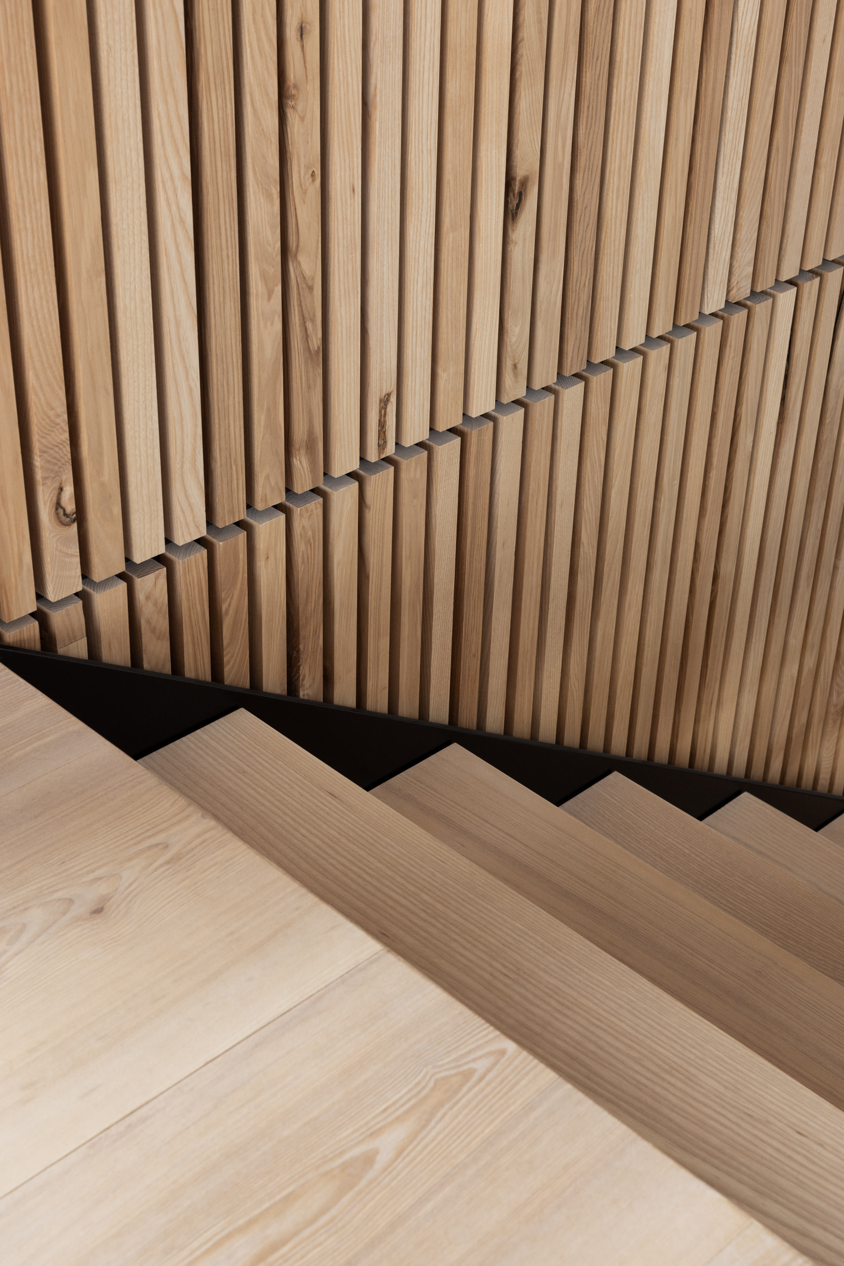 Dinesen Ash, with its light, elegant tones and striking grain patterns, was fitting to reflect the villa’s Scandinavian roots and its connection to the surrounding landscape.