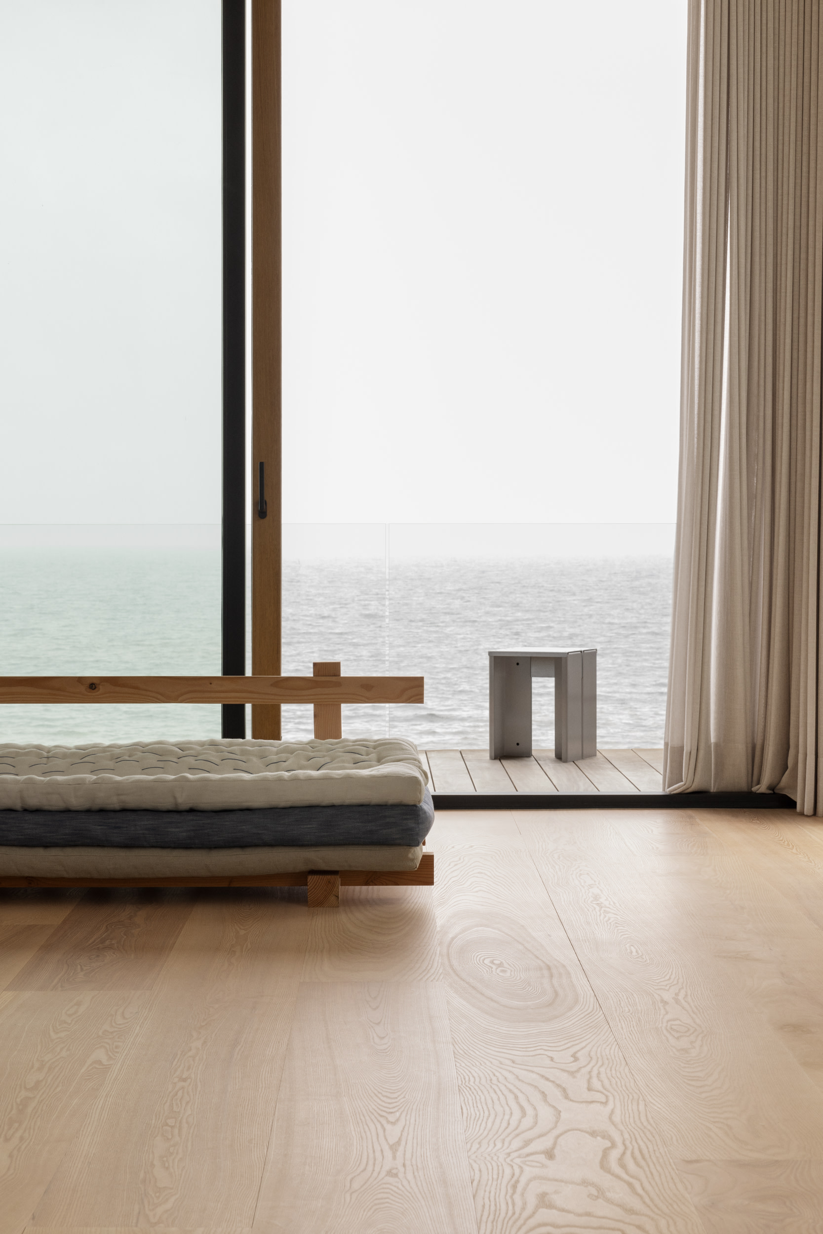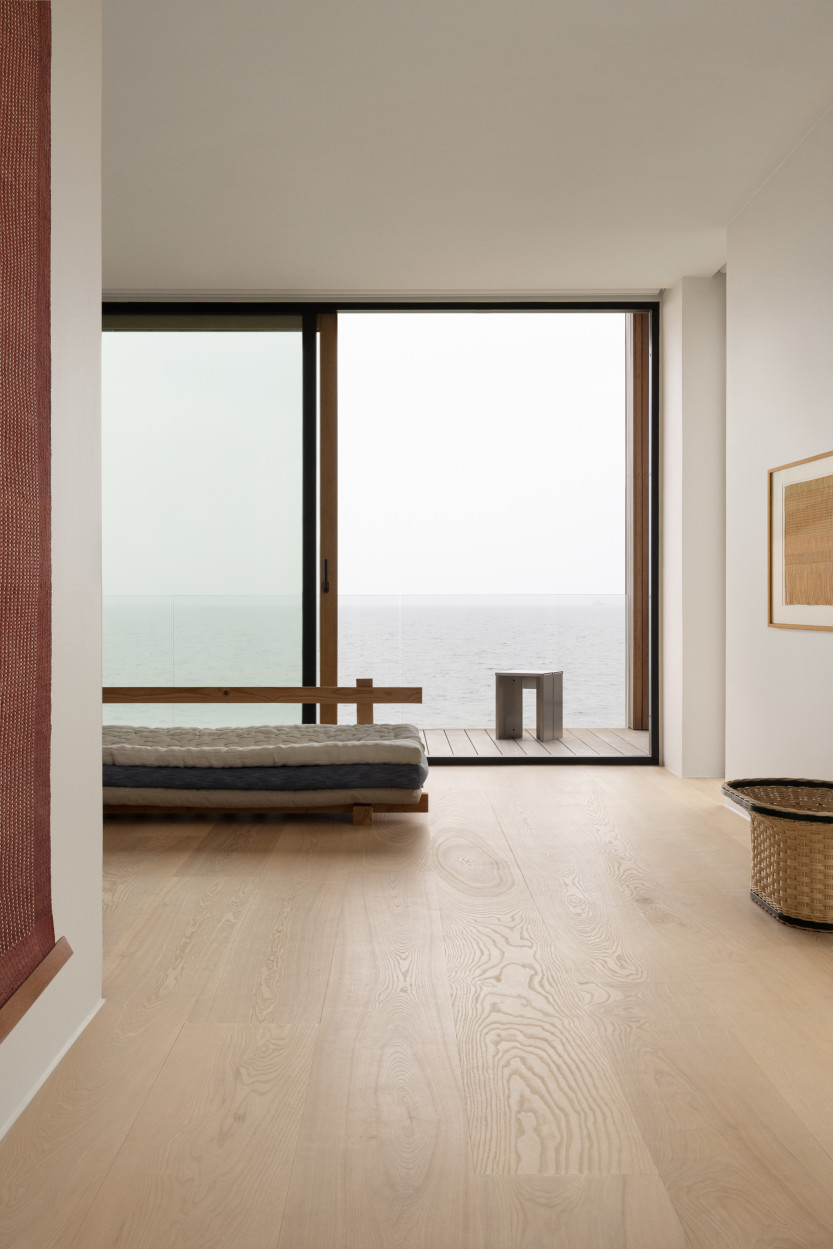 The Ash floors create a natural flow that bridges the indoors and outdoors. The villa’s open layout invites the surrounding environment inside, with expansive windows and doors blurring the lines between the living spaces and the coastal landscape.