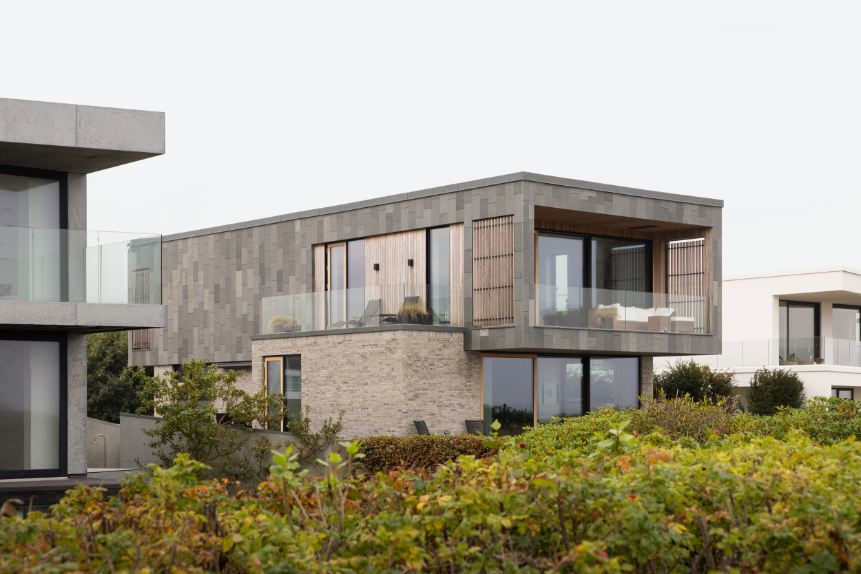 The villa’s lower level is built from brick, providing a solid, grounded foundation, while the first floor, clad in Nordic slate, contrasts with the brick, adding texture and a changing visual effect with the weather and seasons. This combination gives the building a unique, dynamic expression.