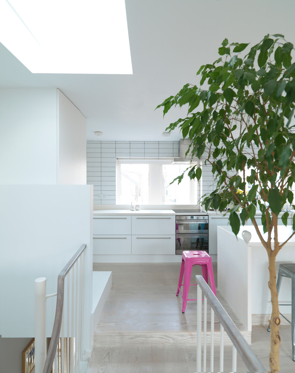 The two-storey home was formerly a student flat and was in need of some attention. Jeremy decided to switch the functions of the two storeys, placing the kitchen and living room on the top floor, which offers a magnificent influx of light and a stunning view of London’s rooftops.