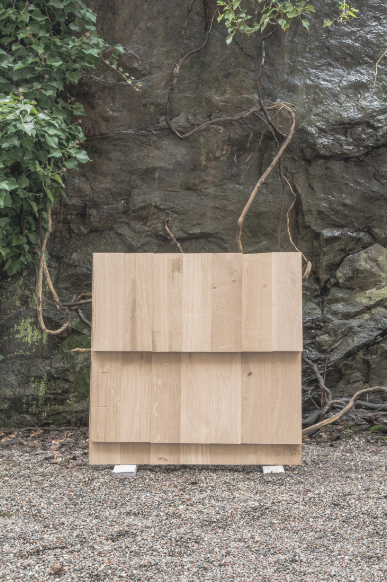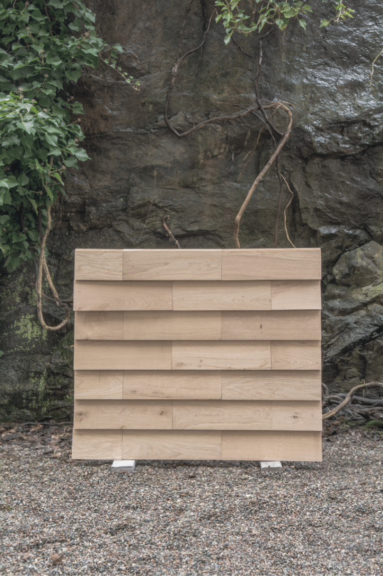 By using Douglas in narrow and short dimensions for wall and ceiling panelling, Erik and Victor discovered a beautiful functional purpose for the planks cut from the outer layers of the tree trunk. Similarly, Douglas offcuts were utilised in bespoke interior solutions to maintain the integrity of the wood throughout. The architects also found a use for the small offcuts in the oak left over from the production of floor planks by employing them for exterior walls and roofing.