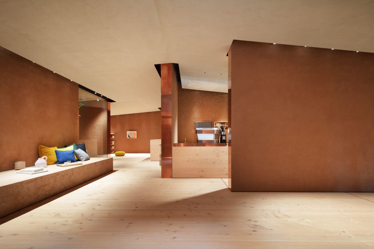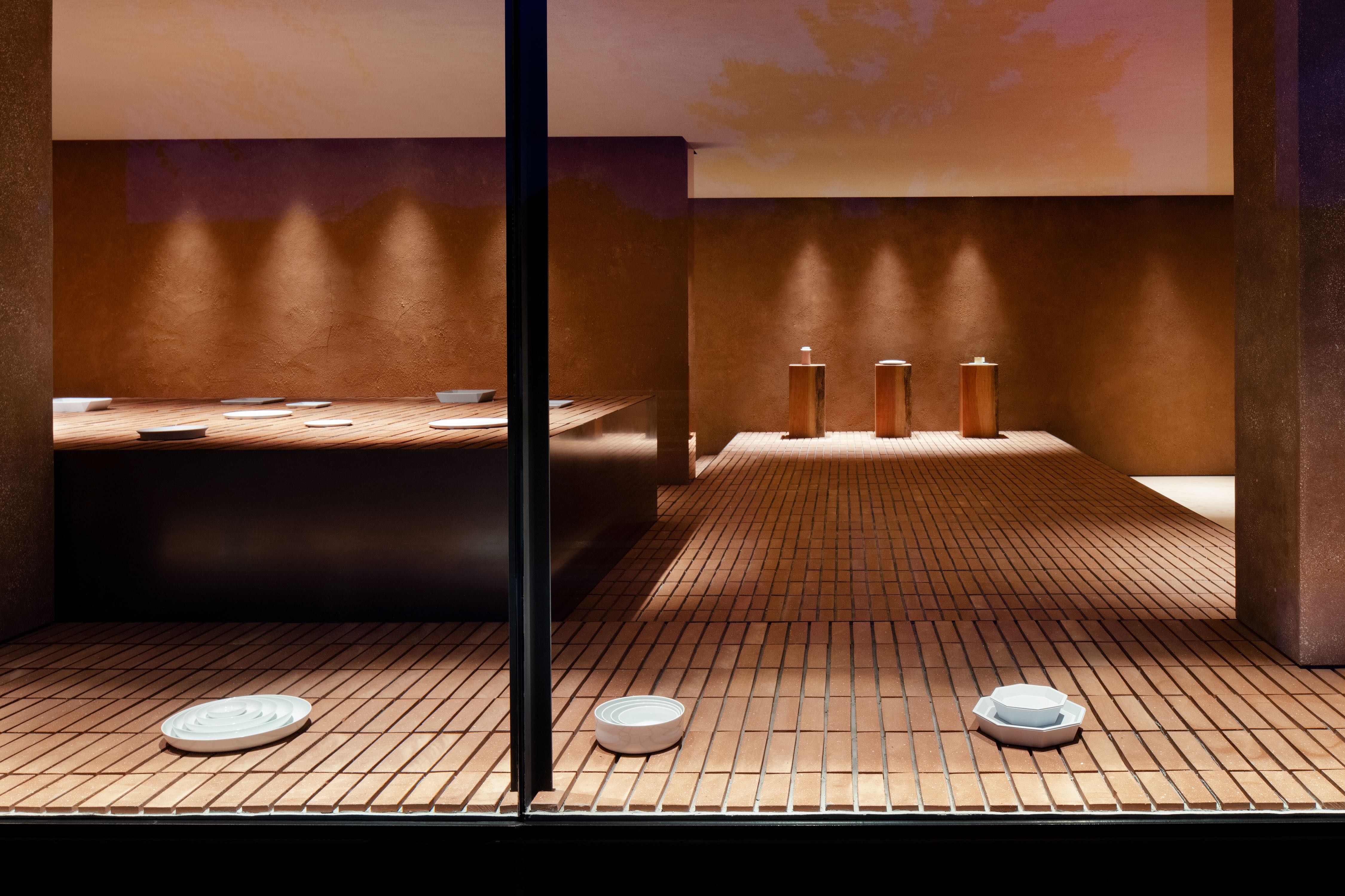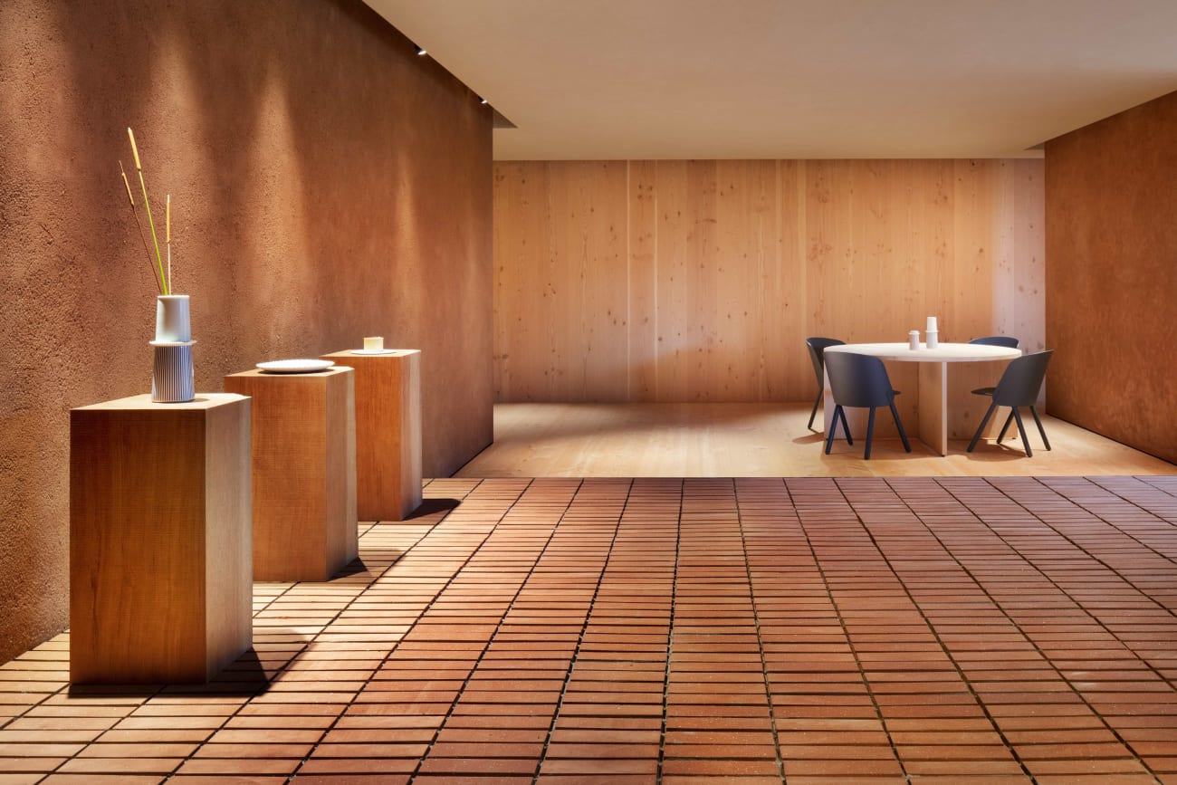 Showroommet 1616 / arita japan viser designeren og den kreative direktør Teruhiro Yanagiharas fascinasjon av Arita-keramikkens tradisjoner. Designet er basert på en materialpalett av keramisk stein, murstein og Dinesen Douglas tre som symboliserer den spesielle porselens-produksjonsprosessen Arita er kjent for, med elting, forming og brenning. Opplev eldgammel keramikkhistorie og moderne design som forenes i dette unike universet, inspirert av lokale Arita-håndverkeres stolte erfaringer og ferdigheter.
