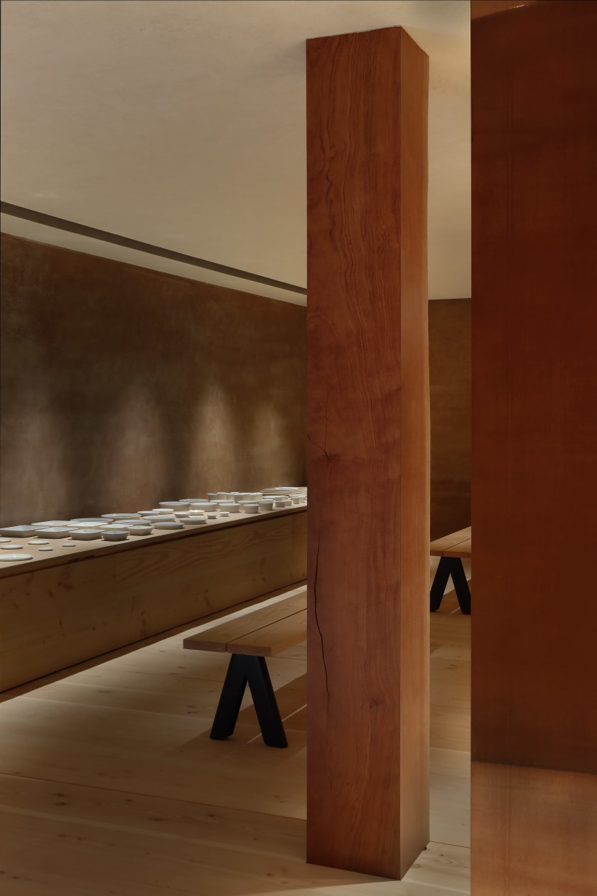Kreativ direktør Teruhiro Yanagiharas hyllest til de lokale Arita-håndverkeres erfaring og ferdigheter gjenspeiles i utstillingsrommet, og tilfører en håndgripelig følelse av kunstnerisk og håndverksmessig karakter. Yanagihara skapte 1616 / arita japan for Momota Touen, med moderne hverdagsprodukter som utstråler ekstraordinært håndverk og styrke, til tross for deres spinkle natur som kjennetegner Arita-keramikk.