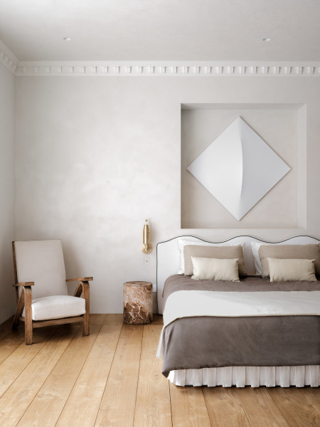 Tanken bak CC residence er å utforske den bevisste spenningen mellom gammelt og nytt gjennom myke toner og taktile materialer.