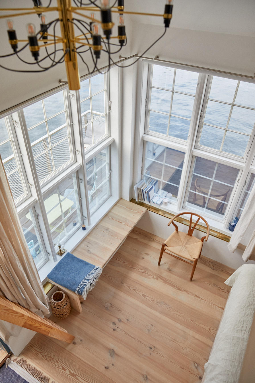 Gjestene kan nyte en panoramautsikt fra historiske vinduer som stammer fra den tidligere danske forsvarskommando, Kuglegården, kun et steinkast unna. Små, runde vinduer i gavlen og siden leder tankene på skips tradisjonelle koøyer og binder en sløyfe på det maritime verket. ”Koøyene” og hotellets dør er hentet fra den lokale butikk Genbyg som forhandler gjenbruksmaterialer.