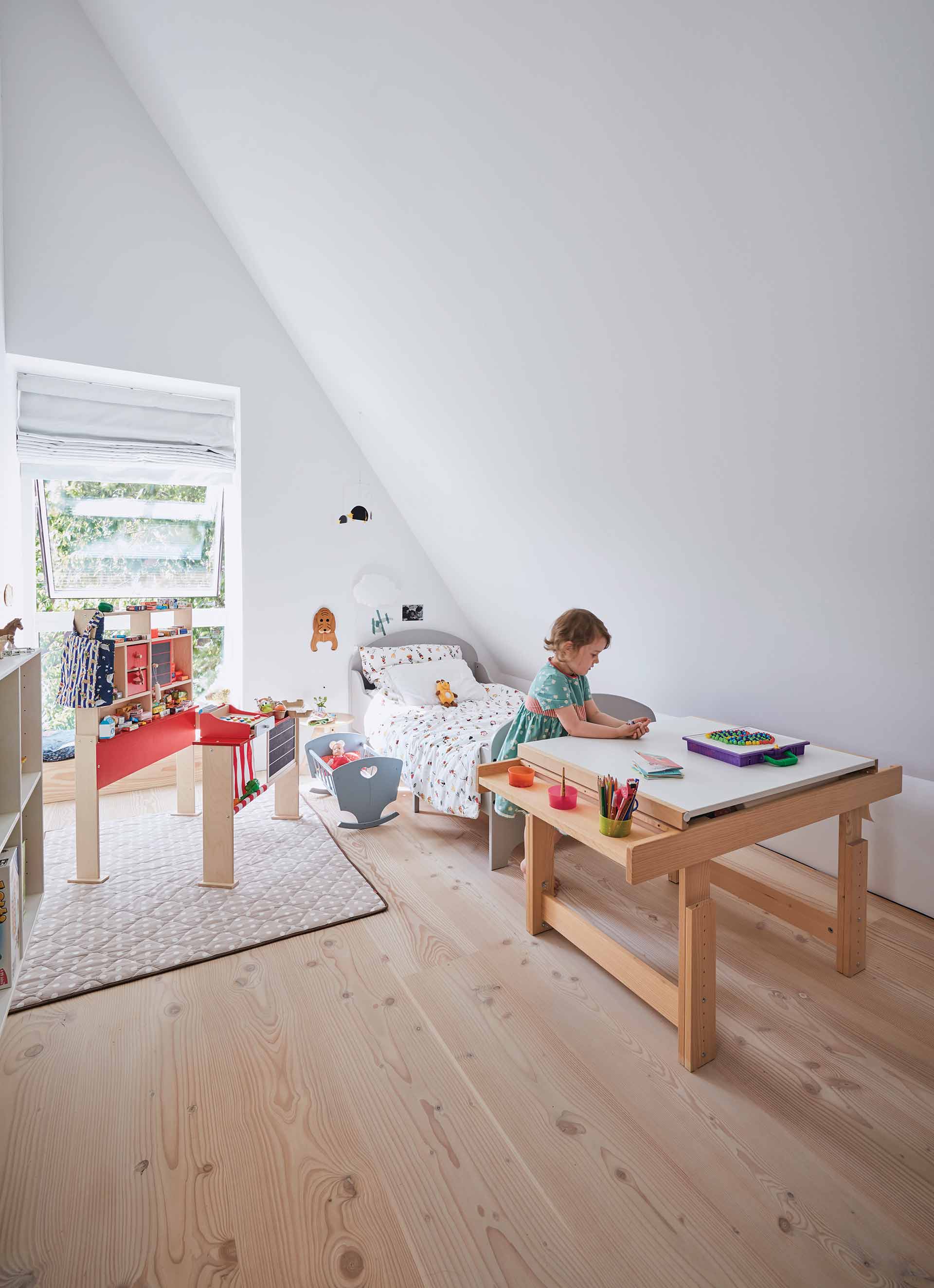 Architects Silja and Malte Timm, the owners of TIMMTIMM, have realised their idea of a modern living space for their family home with floors and bespoke furniture in Dinesen Douglas.