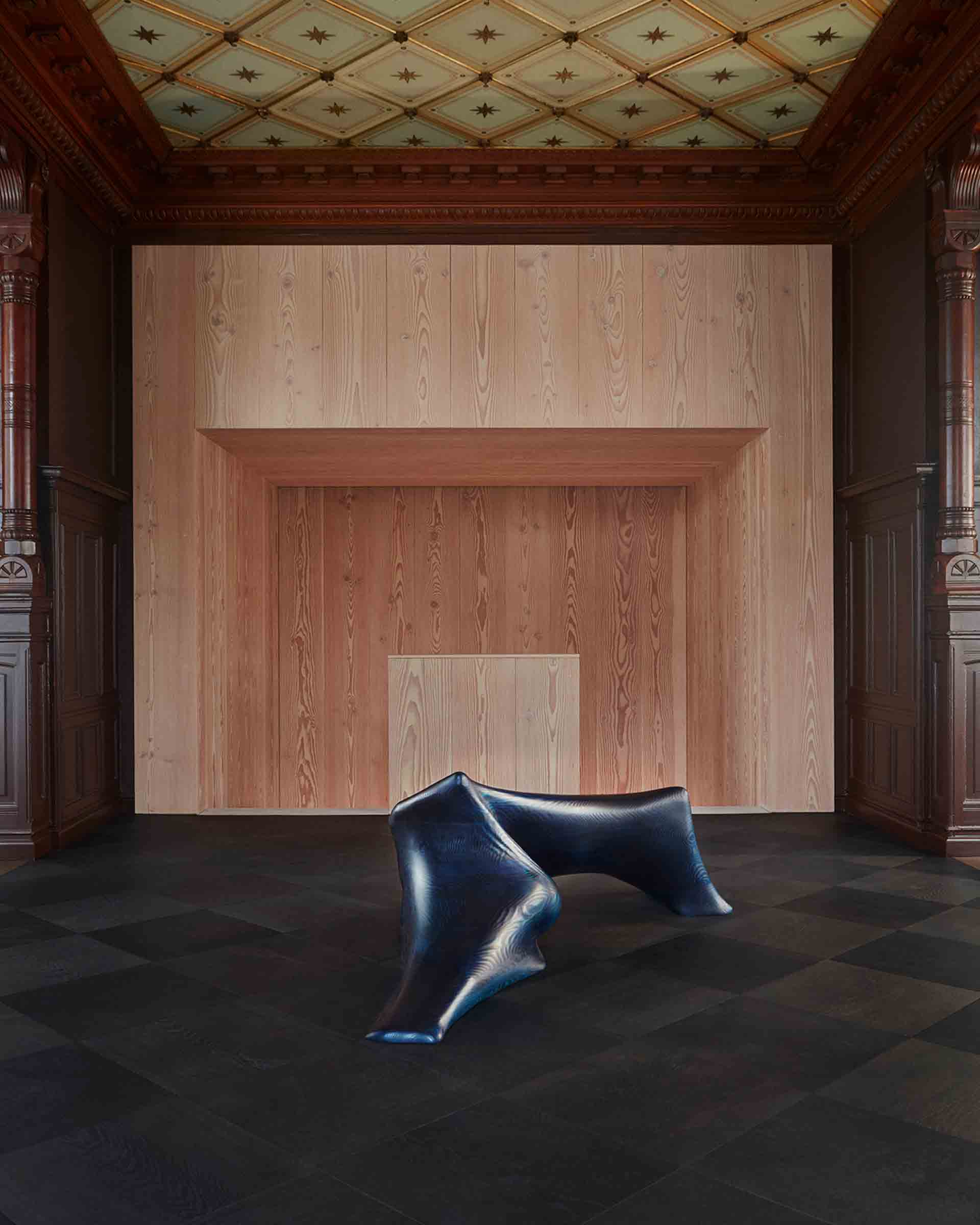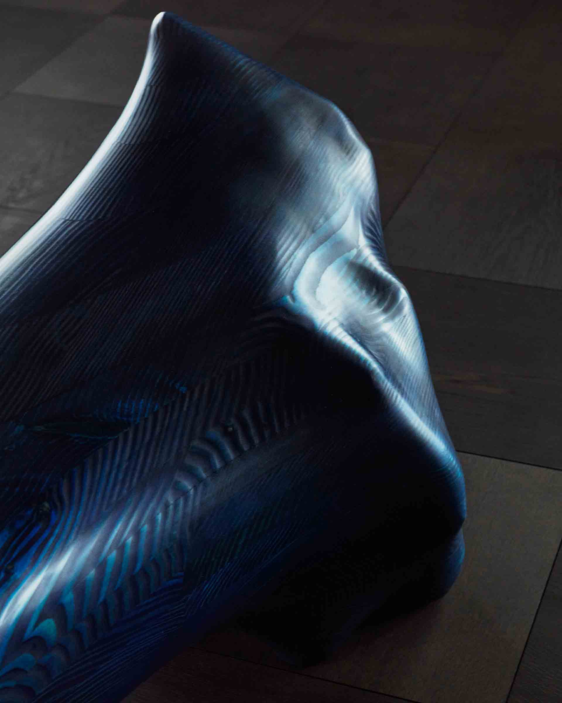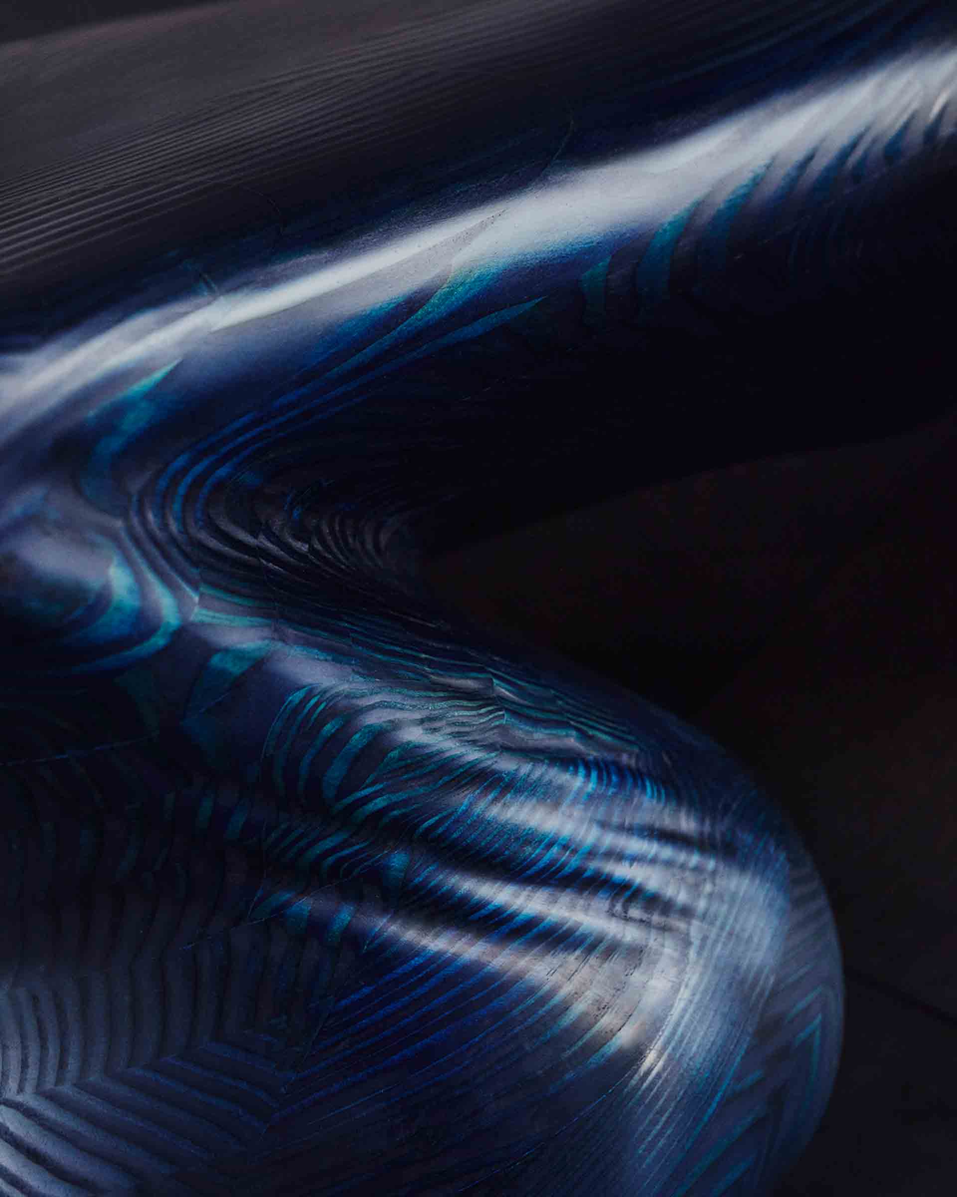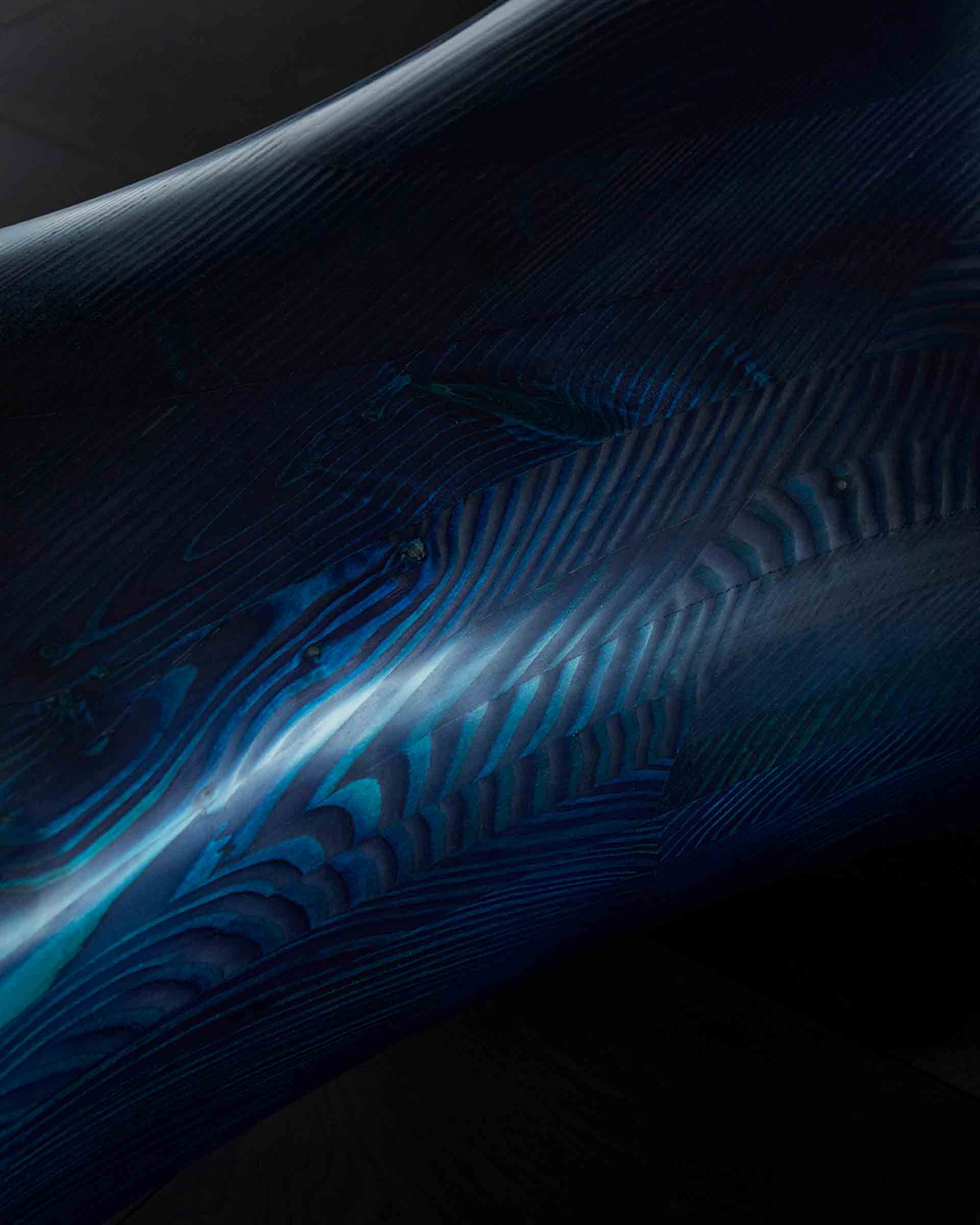 ‘Day Bed’ has been finished in a linseed pigment called Paris Blue provided by Linolie & Pigment in a pairing that brings to life the reverberating grain of the Douglas fir.