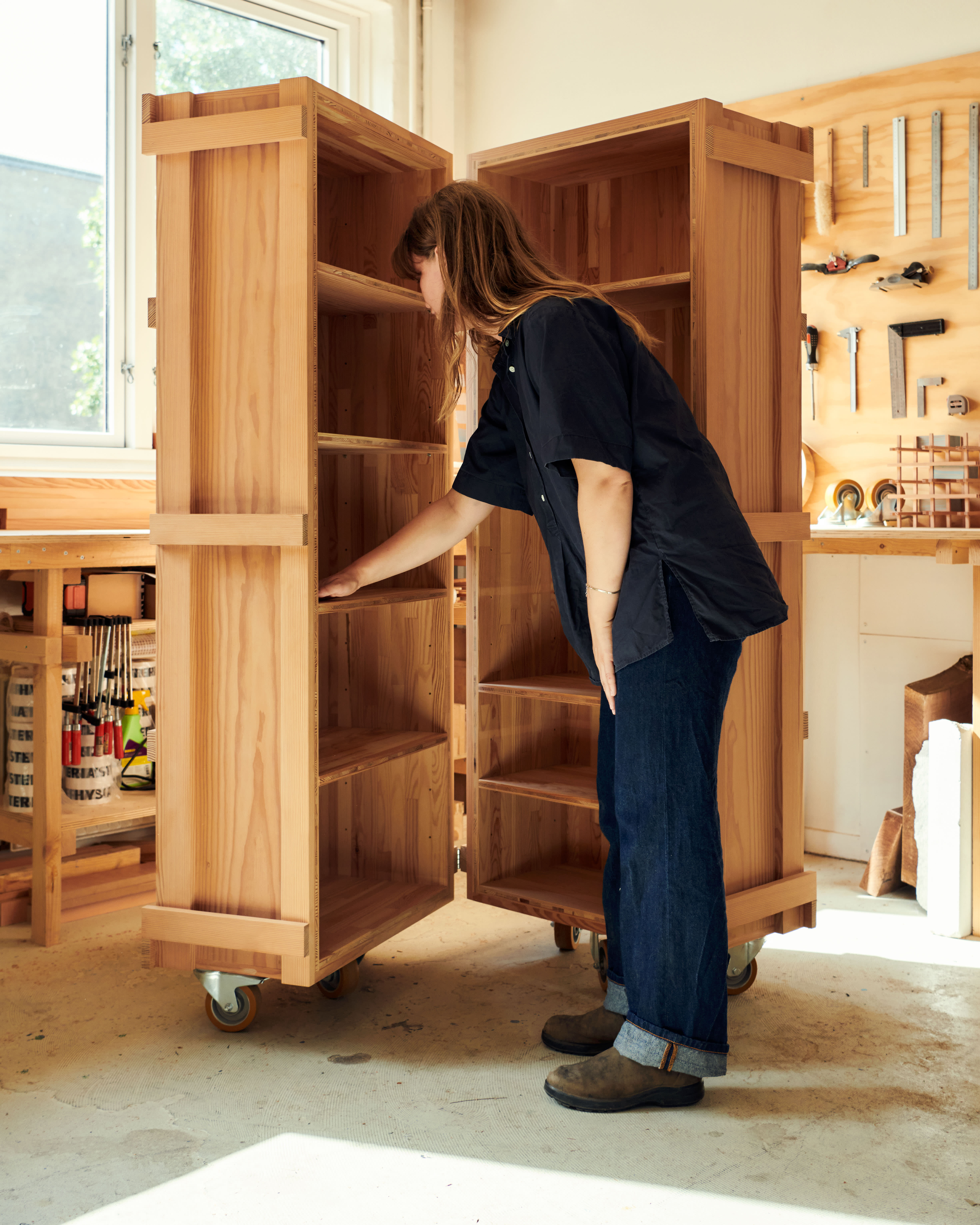 The collaboration between Dinesen and Søgaard began back in 2022 at The Cabinet Makers Autumn Exhibition, where Dinesen provided wood for “Cabinet on Wheels”, a piece designed to question which items and objects we truly need in our daily lives, encouraging greater consideration of how and what we consume.