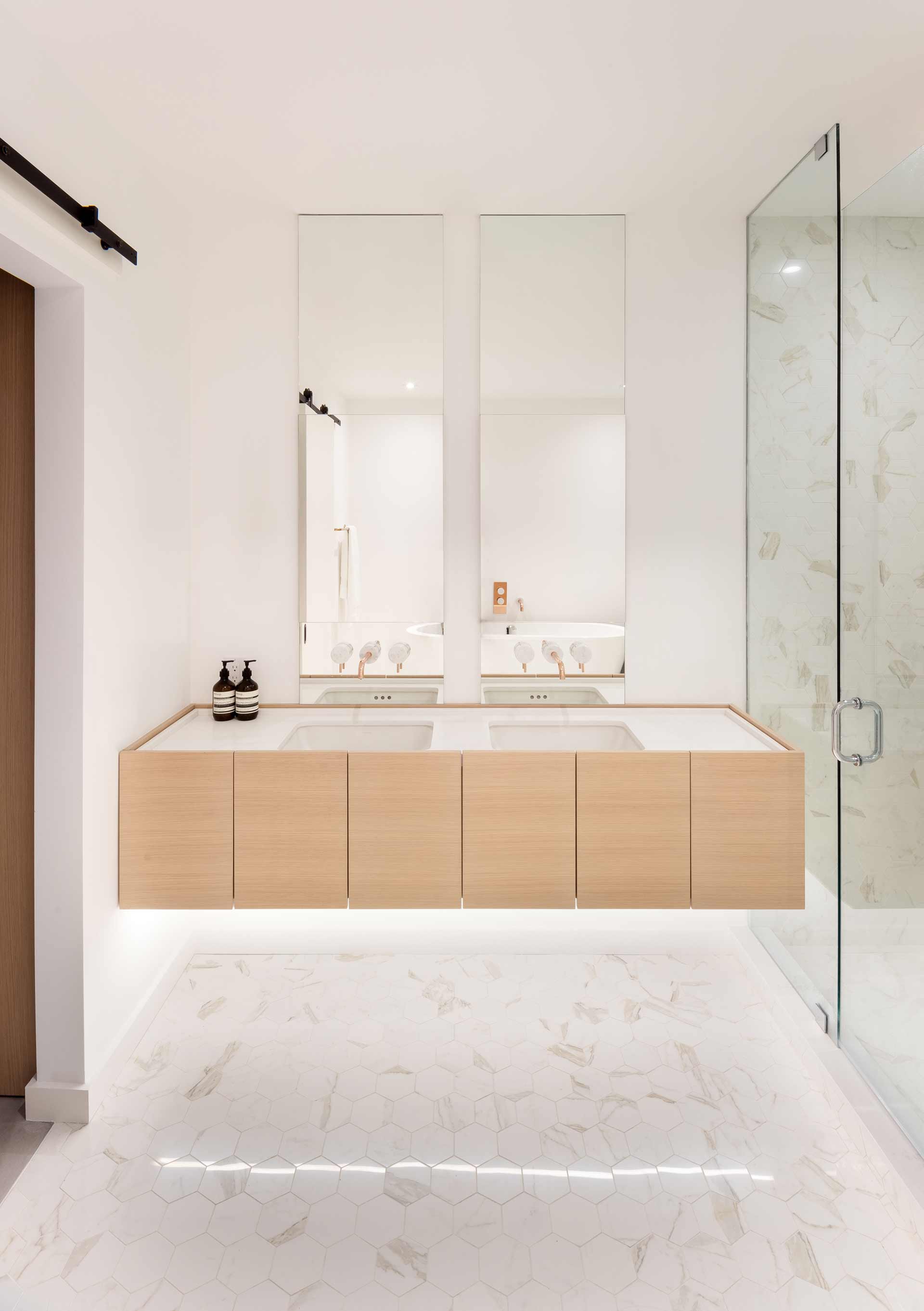 In order to emphasize transitions in the loft, from entry to living and from public to private, StudioAC designed intimate arched hallways that create visual buffers between the different spaces.