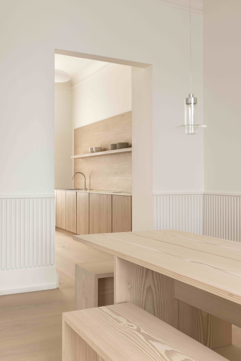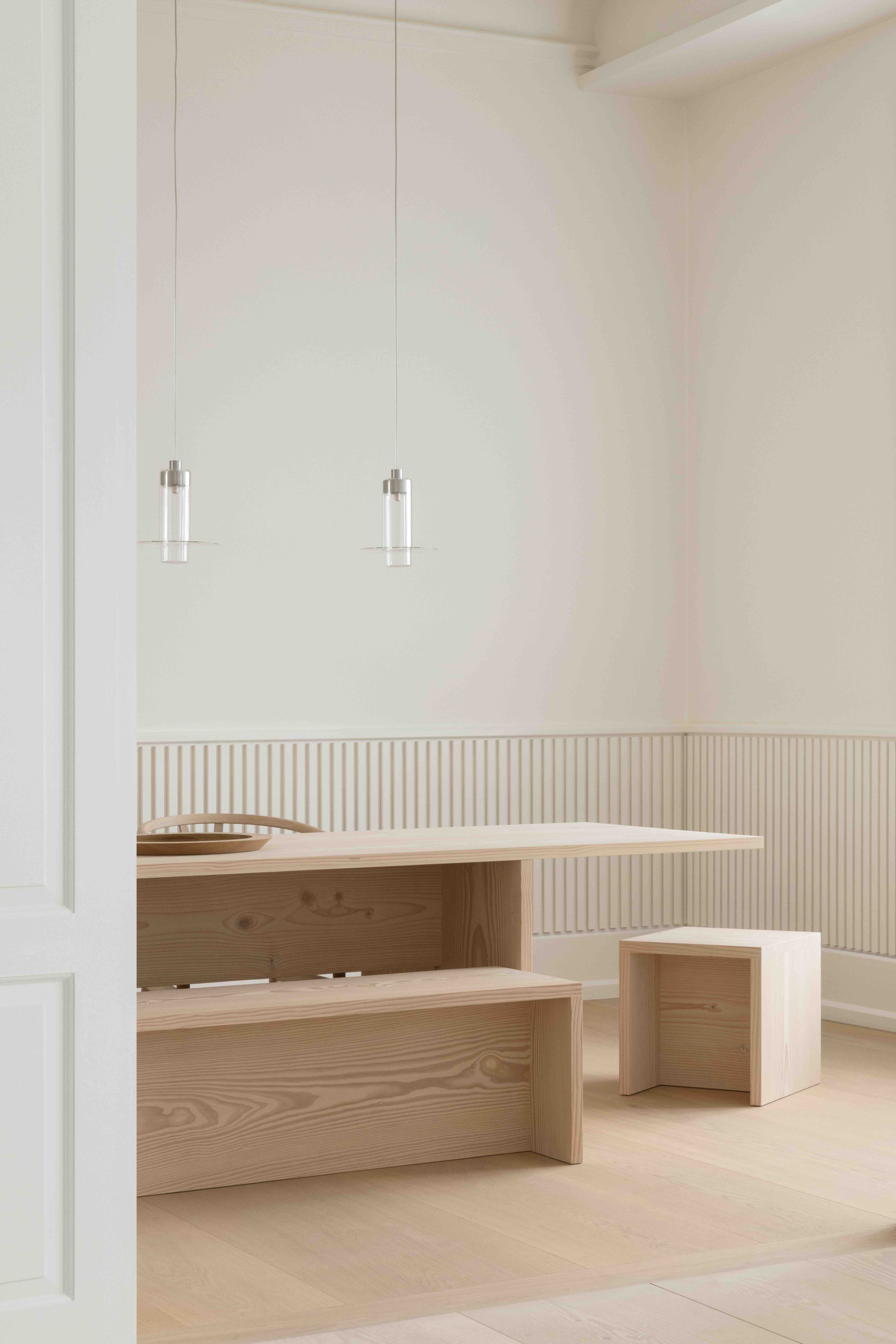 Hängivenheten till materialet och hantverket manifesteras i varje detalj och materialövergång, vilket ger gästerna en unik möjlighet att uppleva och fördjupa sig i det speciella Dinesen och Pawson-universumet som sträcker sig över tre decennier av samarbete och en gemensam passion för trä.