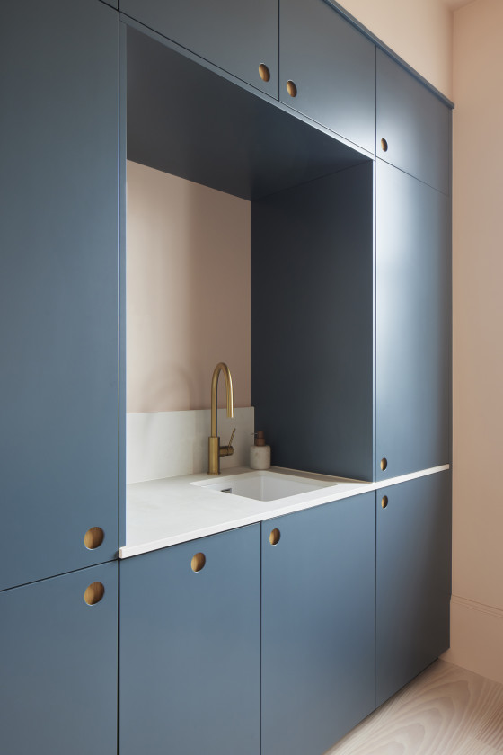 Londonbaserade Studio Merlin står bakom denna helrenoverade lägenhet som utgör ett lugnt och harmoniskt hem för ett par i norra London. Projektets smeknamn, Maison Pour Dodo som kan översättas från franska till ”hus för sömn”, inspirerades av parets önskan om att skapa ett vilsamt hem som hade få störande material. Resultatet blev en förnyad lägenhet där en mjuk, dämpad färgpalett i douce färger och ljust trä bidrar till den lugnande atmosfären. Dinesen Douglas används över bostadens två plan för att skapa en bas av lugn i form av golv, trappor och designade snickerimöbler och interiörlösningar.