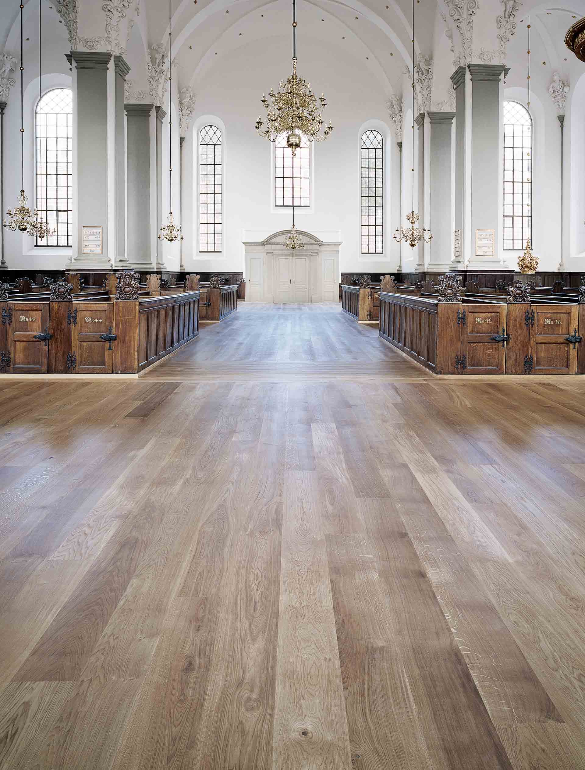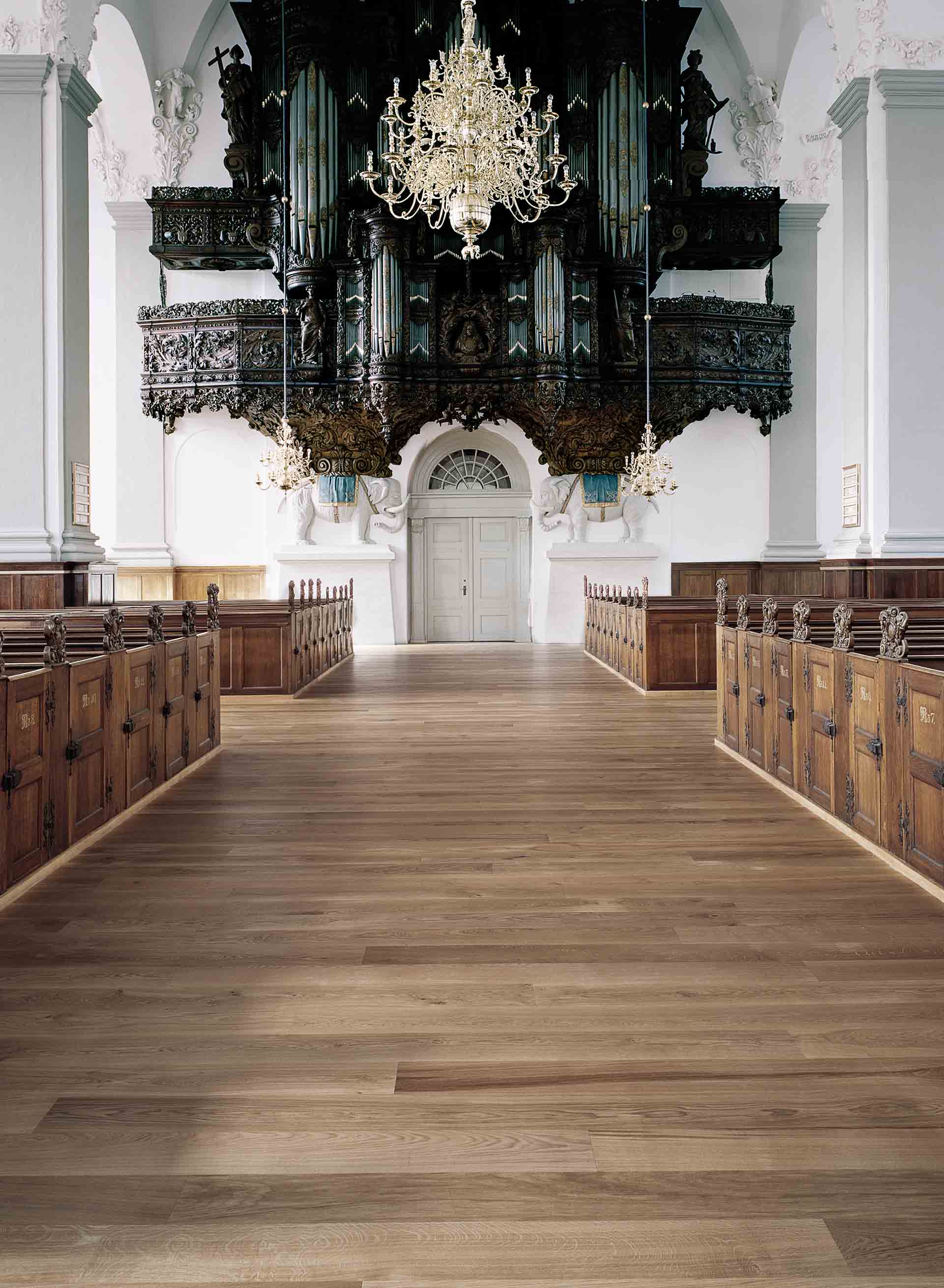 Our Saviour’s Church is a large and important church, and in order to preserve part of the cultural heritage, the floor construction, which rests on a pile foundation, was recreated using special Danish navy oak exclusively. Navy oak is in itself a bearer of Danish history. In 1807, when the British impounded all the vessels in the Danish navy, a new fleet needed to be built to ensure the Danish defence. A huge number of oak trees were planted, but by the time the trees had reached the appropriate size, they were no longer needed to build Danish warships. Instead, the oak trees are now used for far more peaceful purposes.