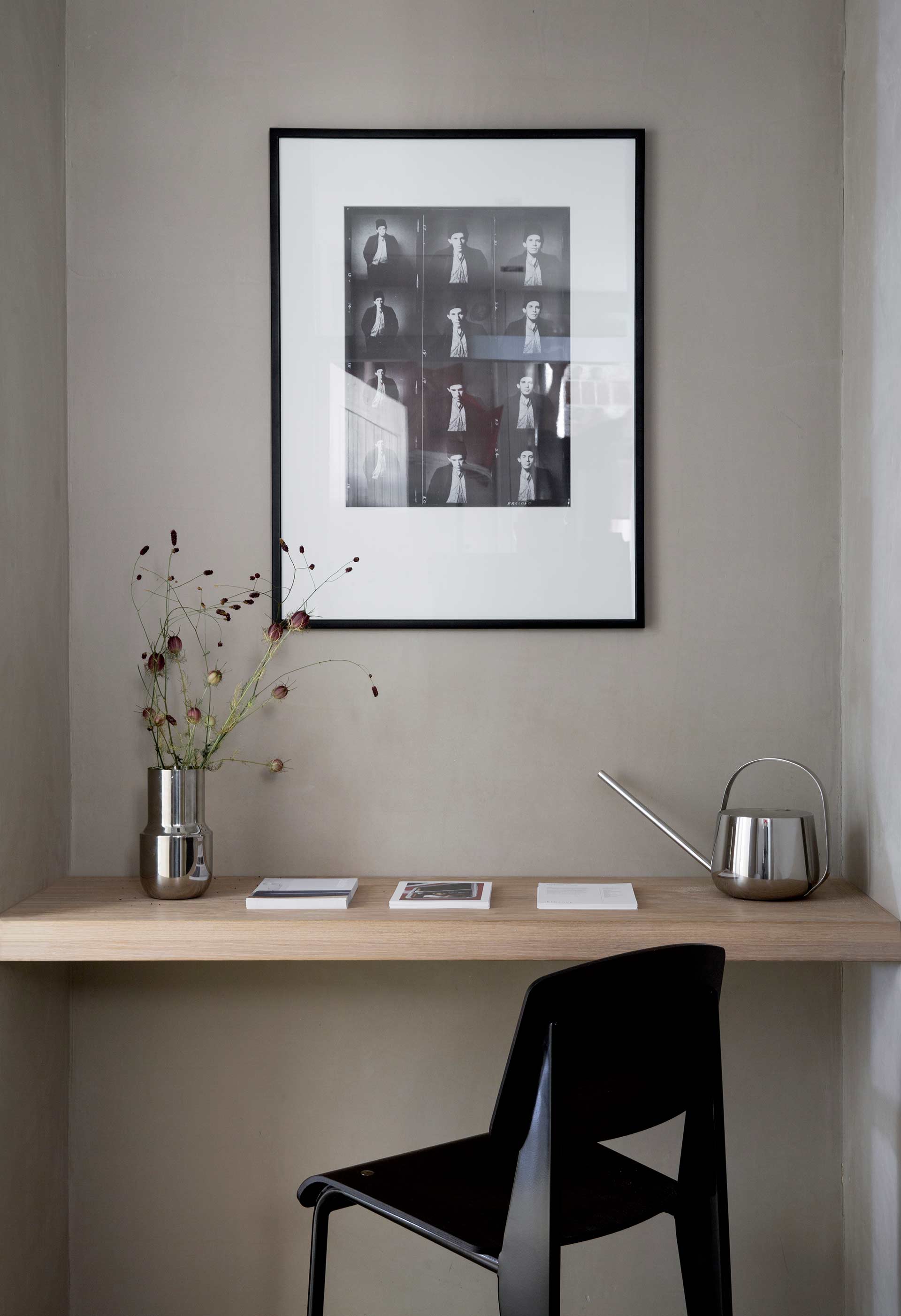With inspiration from both Scandinavian and Japanese design, the interior architecture is minimalist, but thoughtful with attention to every little detail. The colour palette consists of soothing, warm greys, white and black, mixed with fair wood and metals for contrast. Every single tone, nuance and material in the space has been carefully selected to create a harmonious and natural feel that is suited for the Kinfolk credo of slow living.