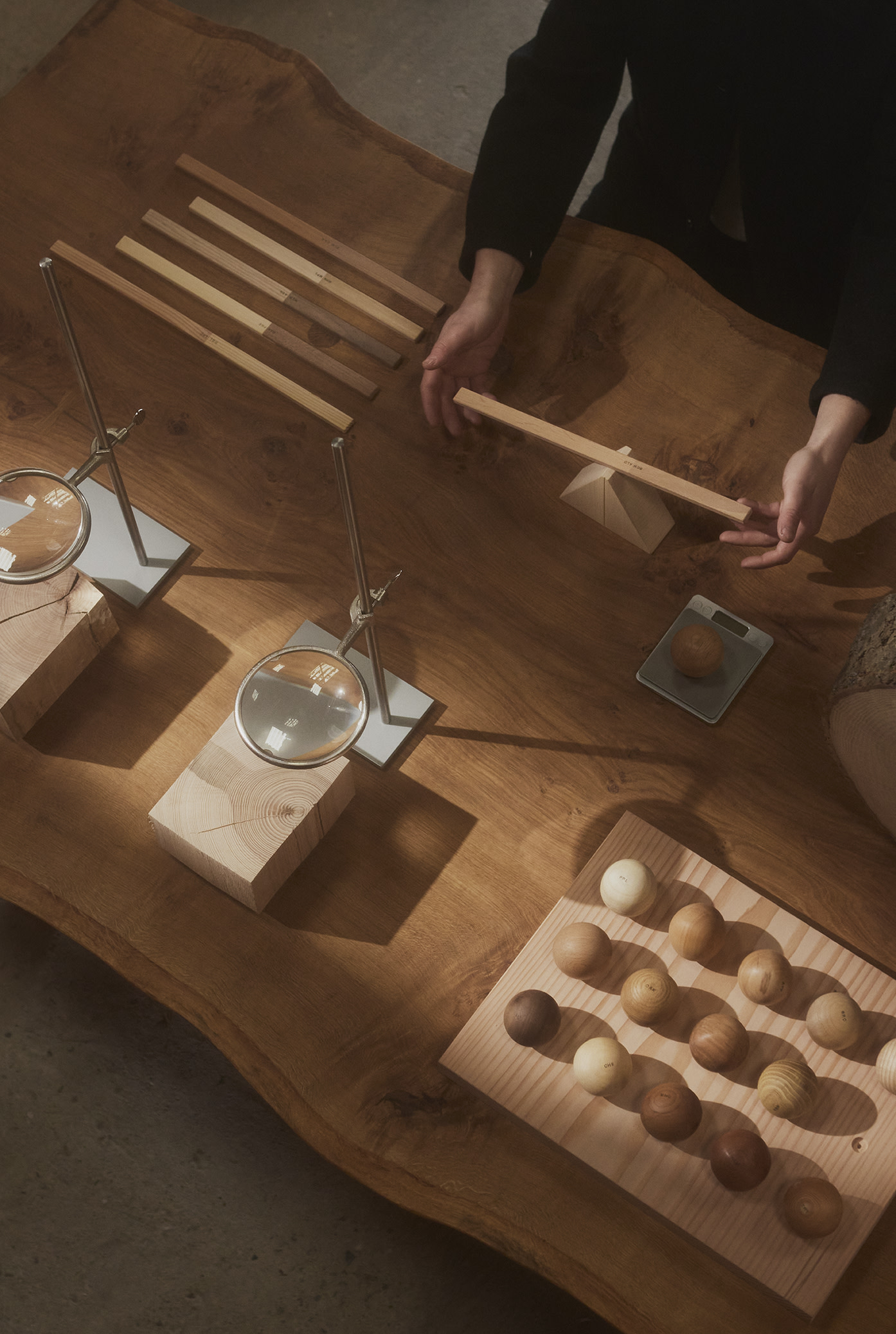 Sitting with two different pieces of wood in your hand you not only see its visual difference, but you feel its weight. Around two years ago, we came up with the idea of exploring different wood weights as a design tool. The more we researched and brainstormed, the more we discovered the complexity of the world of wood. Something as simple as determining the weight of an oak species depended on so many factors. As a result, the scope of the project grew, and we dreamed about doing whole in-depth research, translating the weight of wood into small and large sculptures, and eventually applying our knowledge as design tools for making furniture.